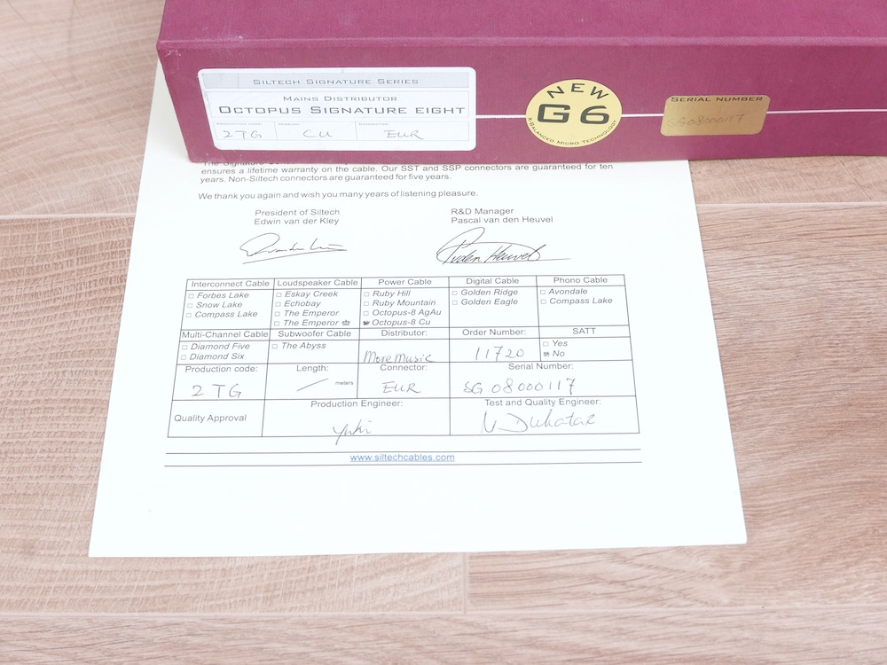 One Siltech Octopus Signature Eight Cu Copper high end audio power distributor in a fantastic condition. It is the original European version with eight schuko outlets. Siltech’s Royal Signature series power block has eight precision AC mains outlets, plus a high current input socket. Superb quality construction and advanced design help to minimise magnetic distortion, for optimum sound. Serial number is SG08000117. Retail price is 2.695 euro. The original box and certificate are included. Check our other listings for more interesting items. Free shipping worldwide!
