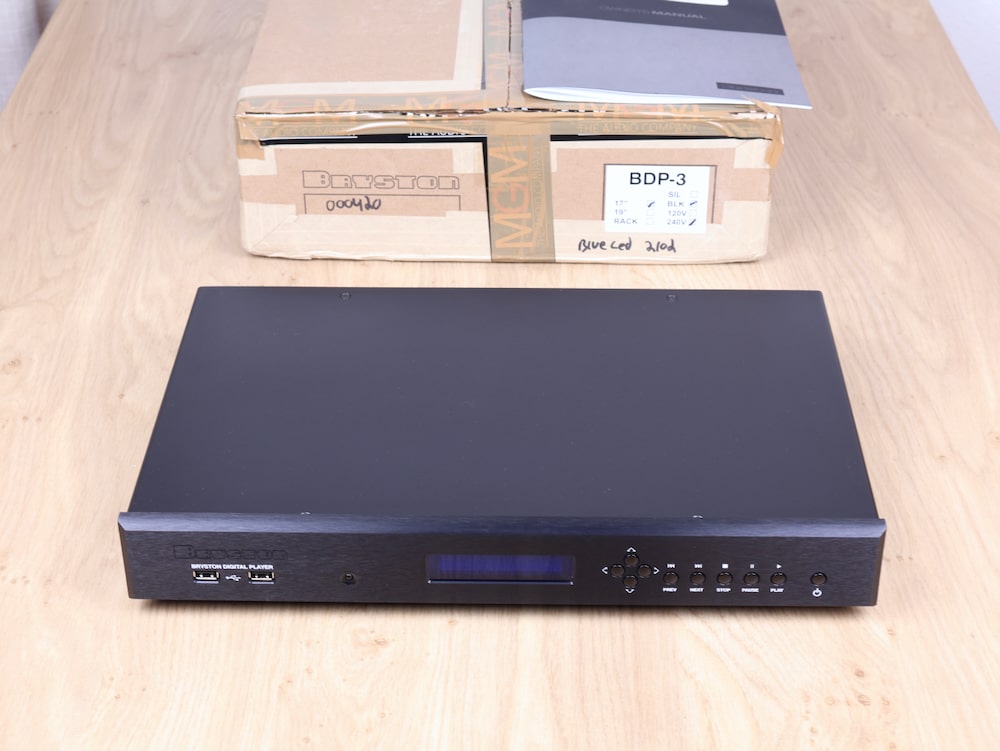 One Bryston BDP-3 high end audio Digital Music Player in a fantastic condition. Serious music lovers collect their favorite tunes from a wide variety of sources. BDP-3 can collate them all into a gigantic library at your fingertips. As a bit-perfect player, it plays music just as intended without unnecessary format conversion or upsampling. The digital output is a perfect facsimile of the original file so you hear your music in all it’s original detail. Bryston regularly issues firmware updates that add new features and keep BDPs well maintained. You are not likely to find a better sounding easier to use music player than the flagship BDP-3. From the very bottom to the top, your music is served with astounding clarity and control. BDP-3 is also a micro detail champ, pulling out every subtle nuance contained in your tracks. Dynamics are also handled with a nice sense of slam when called for. Retail price is 4.590 euro. The original box and manual are included. Check our other listings for more interesting items. Free shipping worldwide!