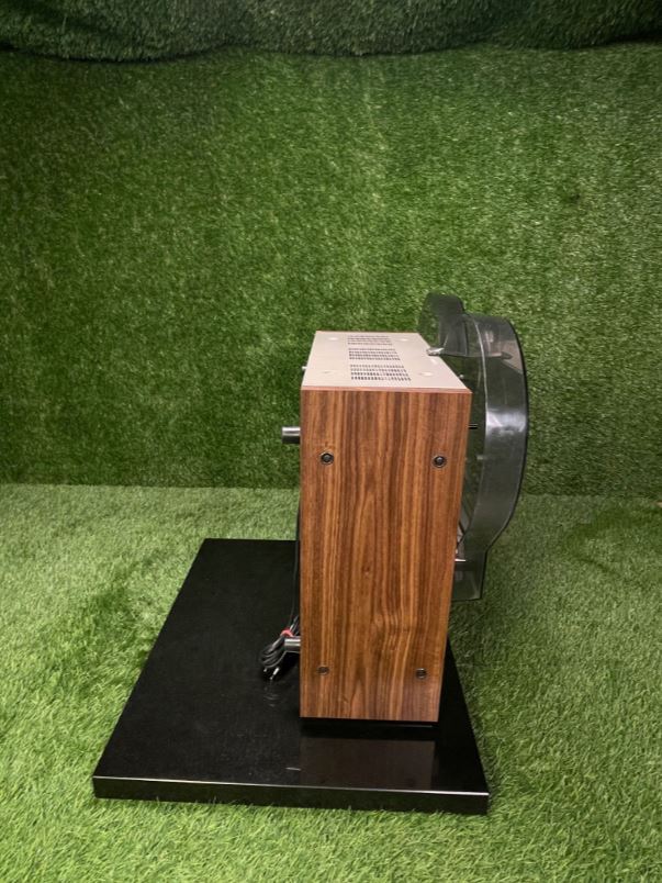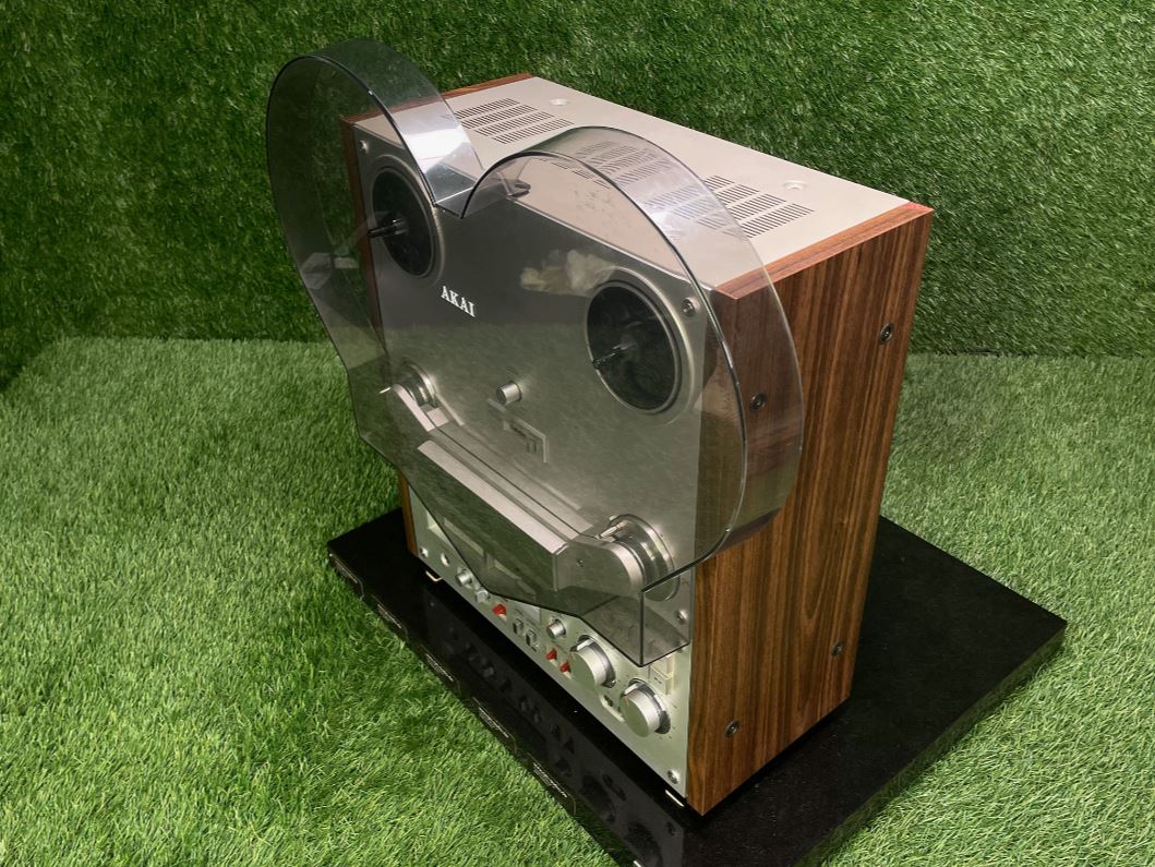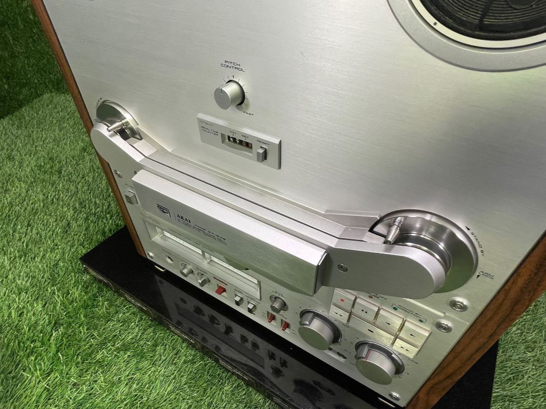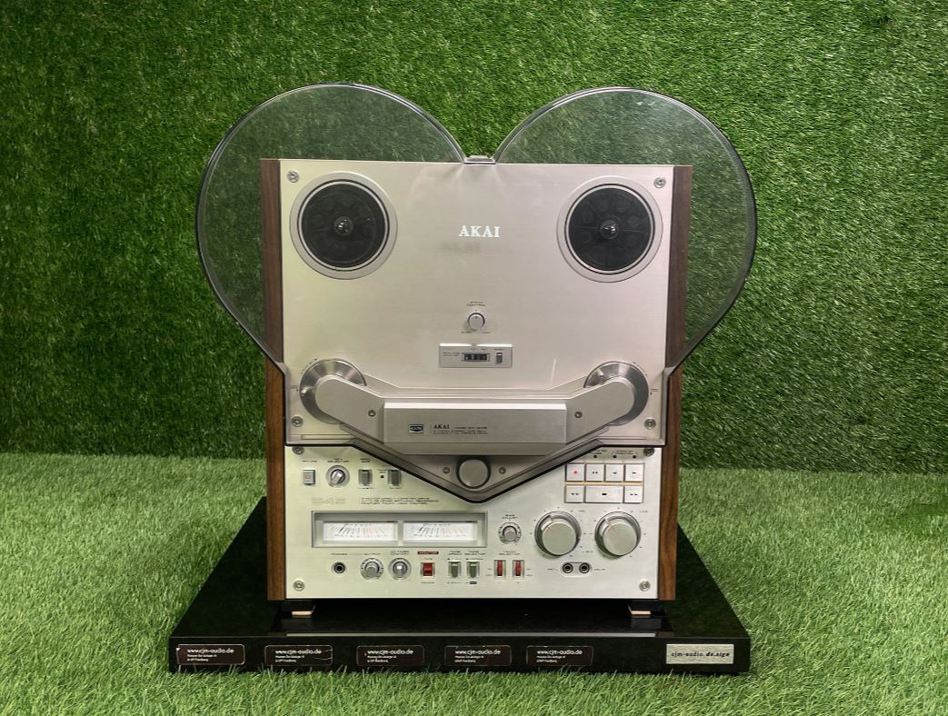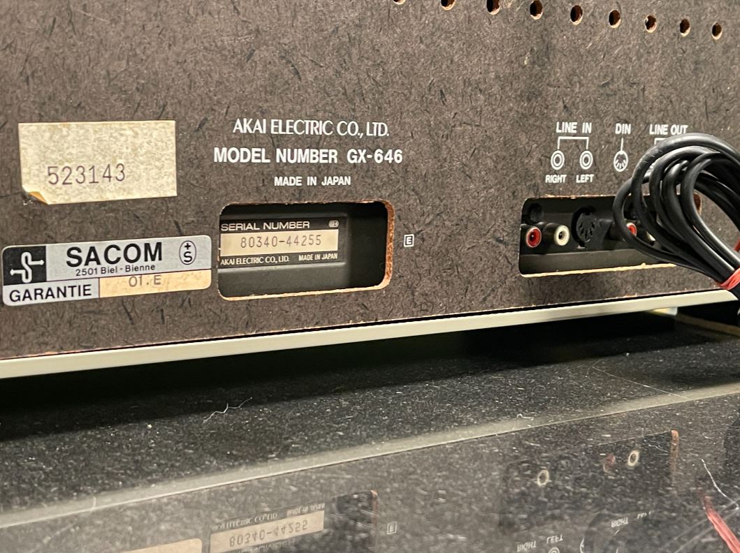 Class preserved and overhauled Akai GX-646 tape recorder including the original Dust Cover. Pictures of the hood will follow, condition almost as good as new/ no replica!.You get a 12-month warranty on your purchase from cjm-audio!Further information (without guarantee):The Akai GX-646 is a tape machine that was manufactured in Japan between 1982 and 1984. This model is an auto-reverse tape recorder, which means that it enables automatic tape reversal without the need to manually rotate the tape. Designed specifically for audiophile users, it offers outstanding build quality and accurate playback quality.The dimensions of the GX-646 are 440 millimeters in width, 483 millimeters in height and 256 millimeters in depth. With a weight of 21 kilograms, the machine is robust and designed for stationary use. The case was offered in silver and black to suit different aesthetic preferences. The power consumption is 75 watts, which is typical for a device of this type and time. The original retail price was around 2,000 German marks, which positioned the device in the upper price range.Technically, the Akai GX-646 has a three-motor drive system. An AC servo motor drives the Capstan, while two eddy current motors drive the tape reels. The machine is designed for coils with a diameter of up to 26.8 centimeters. Six heads provide signal processing: two GX heads for recording, two for playback and two erasing heads. This design ensures high reliability and durability of the heads, which are made of glass and ferrite.The device operates at two tape speeds of 9.5 cm/s and 19 cm/s, covering a frequency range of 25 to 33,000 hertz at 19 cm/s. The synchronization fluctuations are less than 0.03 percent for the higher speed and less than 0.04 percent for the lower speed. The signal-to-noise ratio is 65 decibels, while the distortion factor remains below 0.4 percent. These values show that the device is suitable for both professional and demanding home applications.Additional features such as pitch control for speed adjustments, bias control for fine-tuning the recording quality, as well as a timer start and auto-mute function underline the comfort and versatility of the machine. Standardized inputs, including a line input, DIN connector and microphone jacks, as well as outputs for line signals and headphones, make it easy to integrate into various audio environments.The Akai GX-646 represents the pinnacle of analog tape technology of its era and remains popular with collectors and lovers of high-quality audio technology