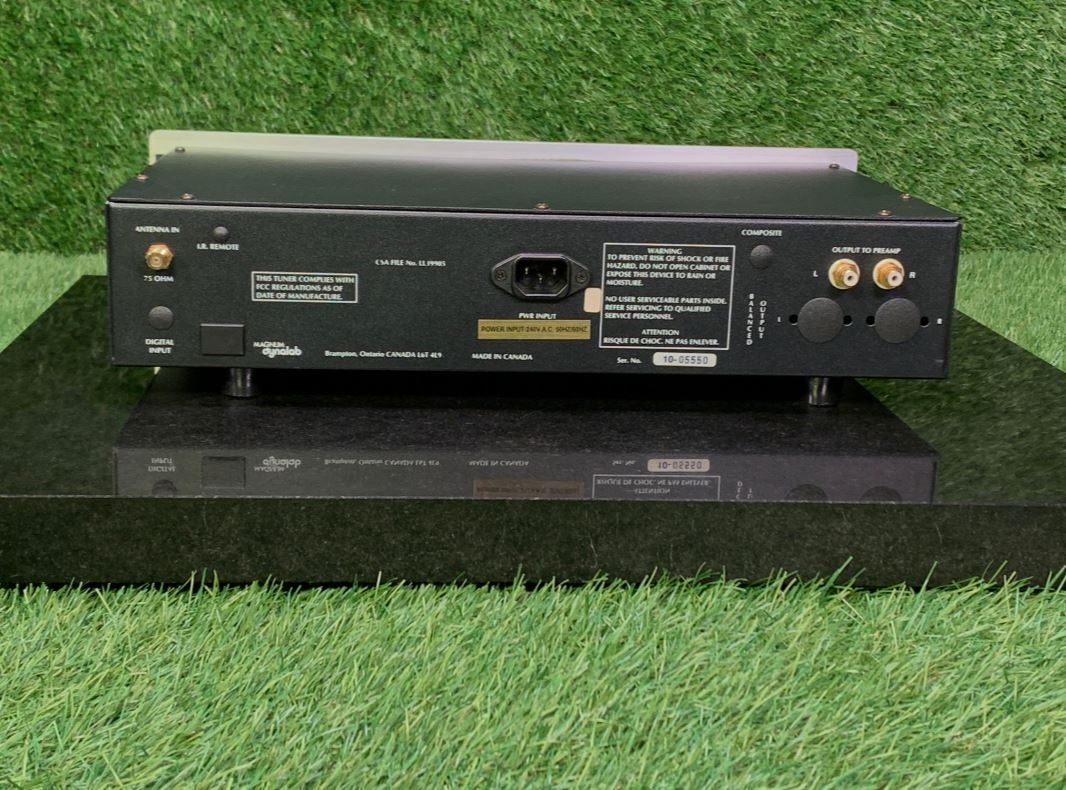 Magnum Dynalab MD-90 analog high-end tuner in perfect condition.Further information (subject to change):The Magnum Dynalab MD-90 is a high-quality analog FM tuner that continues the tradition of the FT101A with improved features and precise sound quality. Like its predecessor, it is characterized by exceptional sensitivity, selectivity and tonal accuracy, using state-of-the-art discrete analog technology.At the heart of the MD-90 is a MOSFET front-end with a triple amplifier stage, which precisely amplifies even weak signals and separates them with a "group delay" filter. This ensures a lifelike and clear audio output. In addition, the device contains a patented "Auto Blend RF Circuit" technology, which dynamically adjusts the stereo separation and minimizes distracting background noise, such as the so-called "chirping".Another highlight is the dual automatic gain control loop (AGC), which stabilizes the signal and protects it from interference from neighboring frequencies. These features ensure optimal reception quality, even in urban areas with high signal overlay.In addition, the MD-90 has exceptional technical specifications, including excellent signal-to-noise ratio, stereo separation, and AM interference suppression. With a solid cabinet, meticulous workmanship, and its focus on pure sound quality, the MD-90 remains an excellent choice for audiophiles.