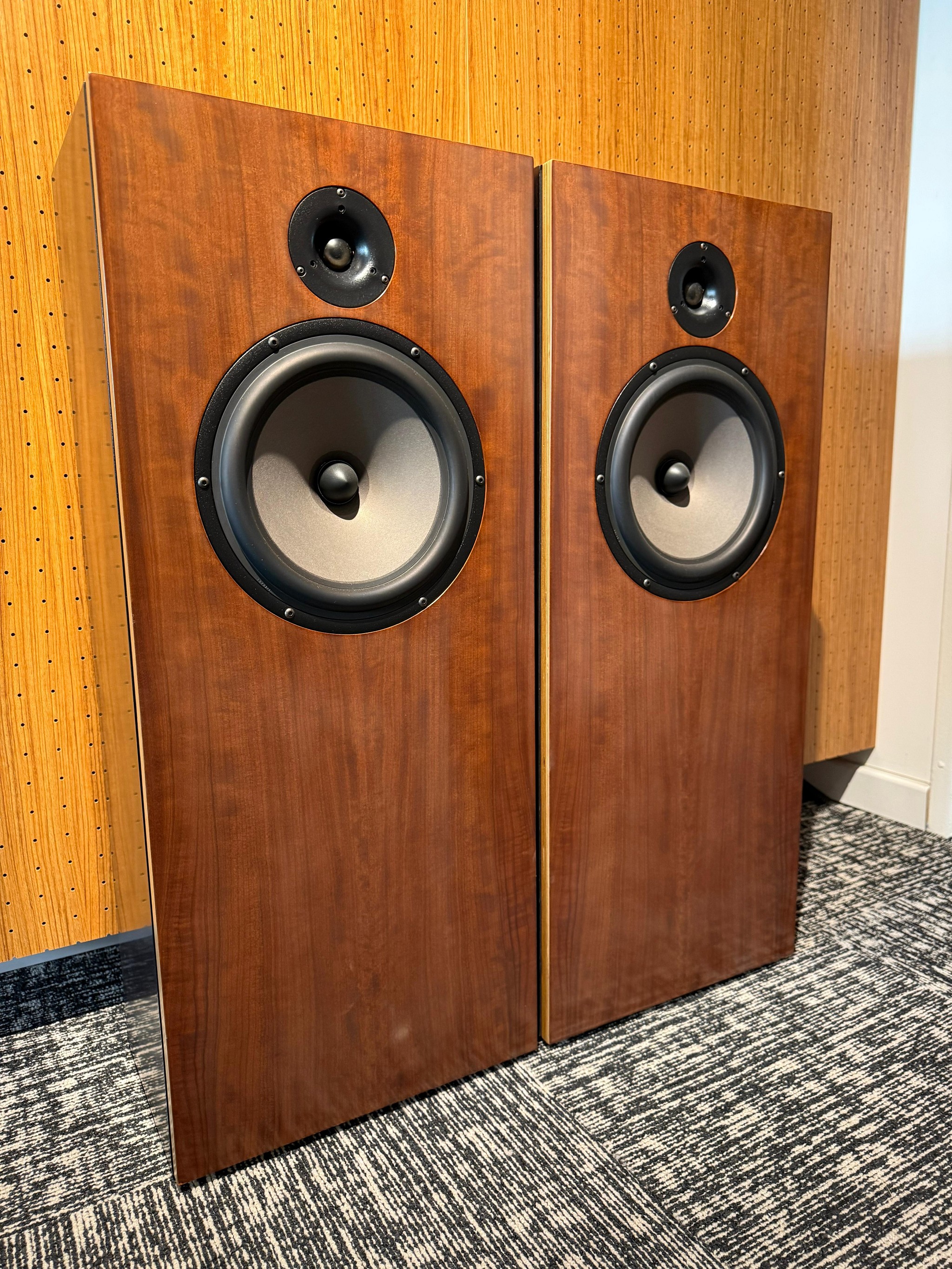 Frequenzgang: 30Hz-22kHzEmpfindlichkeit: 93 dB/W/MImpedance: 10 OhmAbmessungen: 10" T x 15" B x 35,5" HFinish-Optionen: Gemustertes Mahagoni oder Custom