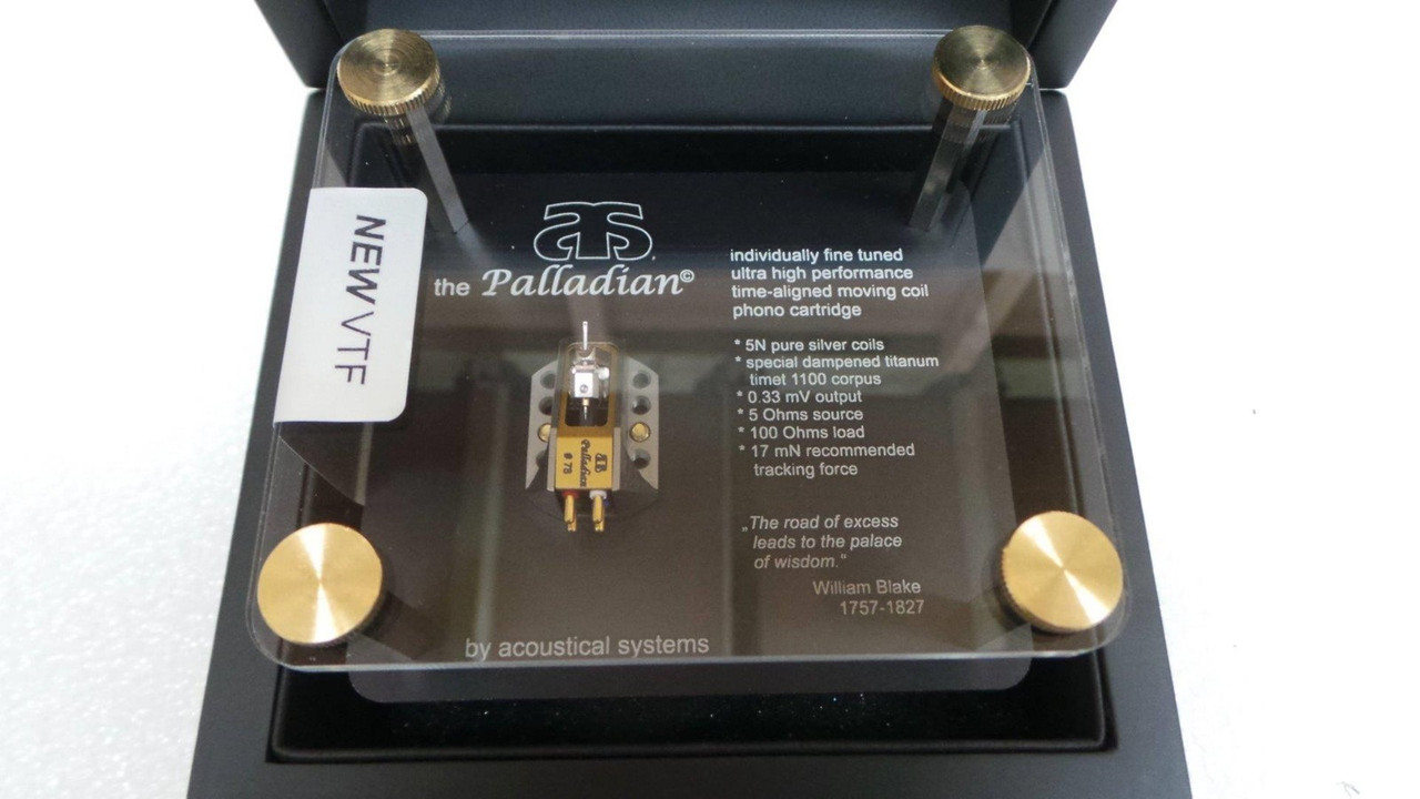 El Palladian es un desarrollo avanzado del Aiwon, en el que Dietrich Brakemeier se centró principalmente en acercarse bastante a la impresión musical en vivo o, dicho de forma más prosaica, en mejorar aún más las capacidades dinámicas y la inmediatez del cartucho. Para ello, se acortó ligeramente el voladizo, lo que redujo la masa móvil, a la vez que se modificó el alambre de refuerzo. Por cierto, el voladizo del Palladian, como ocurre con todos los cartuchos Acoustical System, está fabricado en aluminio templado, que además ha sido tratado con laca C37. Según la experiencia del diseñador, los voladizos fabricados con materiales más duros, como el boro, el rubí o el diamante, están sujetos a resonancias en el rango de presencia, lo que, entre otras cosas, provoca una sobreexposición al ruido, que aparece en mayor o menor medida en cada grabación. Por lo tanto, el aluminio resuena en un rango de frecuencias más bajo y menos perturbador. Además, en los cartuchos Acoustical System, estas intrusiones se minimizan gracias al lacado C37.