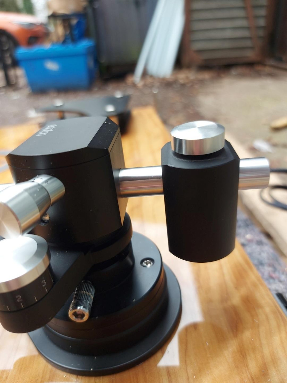 Ausgezeichnet mit originaler Holzkiste, Drehtischklemme und Kopfschale.