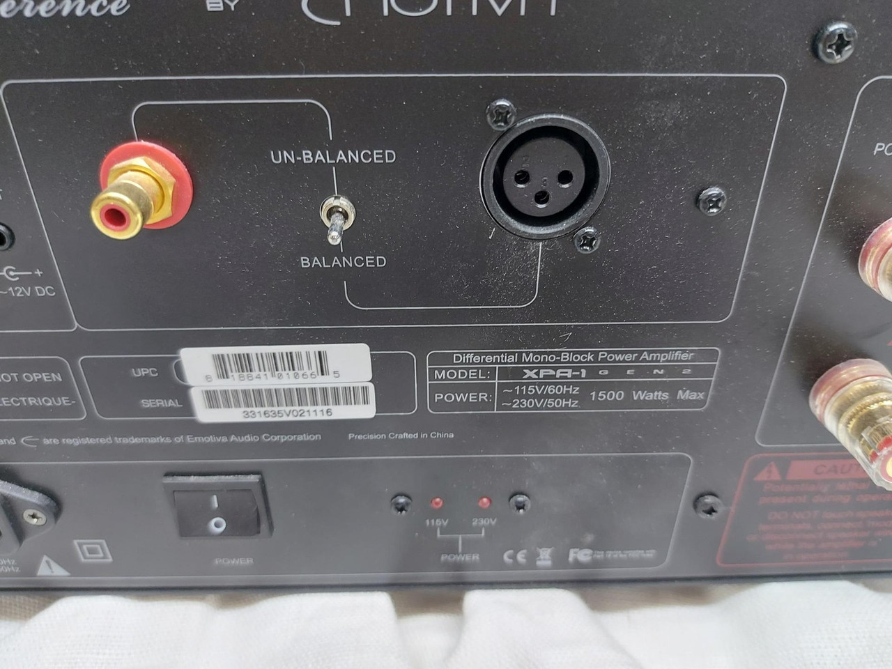 Excellent.Key FeaturesFully discrete, fully balanced, Differential Reference™ designMassive, high current toroidal power supply, switchable Class A and Class A/B operating modesAdvanced microprocessor operating system which protects the amplifier from all fault conditions.Balanced and unbalanced inputs, Trigger input and outputPrecision blue LED power meter with switchable modes, dimmable or defeatable.Do you have any questions? Get in touchEmotiva XPA-1 Black Gen2 Monoblock Power Amplifier Overview[Emotiva]The XPA-1 Gen 2 is the ultimate expression of our X-Series Gen 2 power amplifiers, reflected in its differential-all-the-way-through design, superior build quality, and even tiny—but meaningful—touches like machined, gold-plated RCA connectors, a high-quality metal toggle switch for input selection, and an informative metering system that can be dimmed or turned off entirely. Every aspect of the XPA-1 Gen 2 has been carefully considered and engineered to deliver an amazing experience, delivering up to a massive 1000 watts of power.