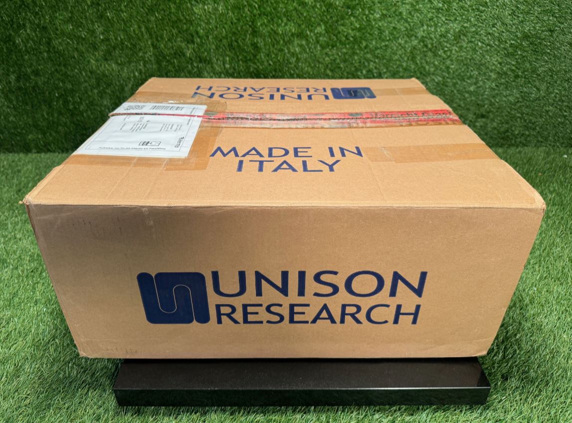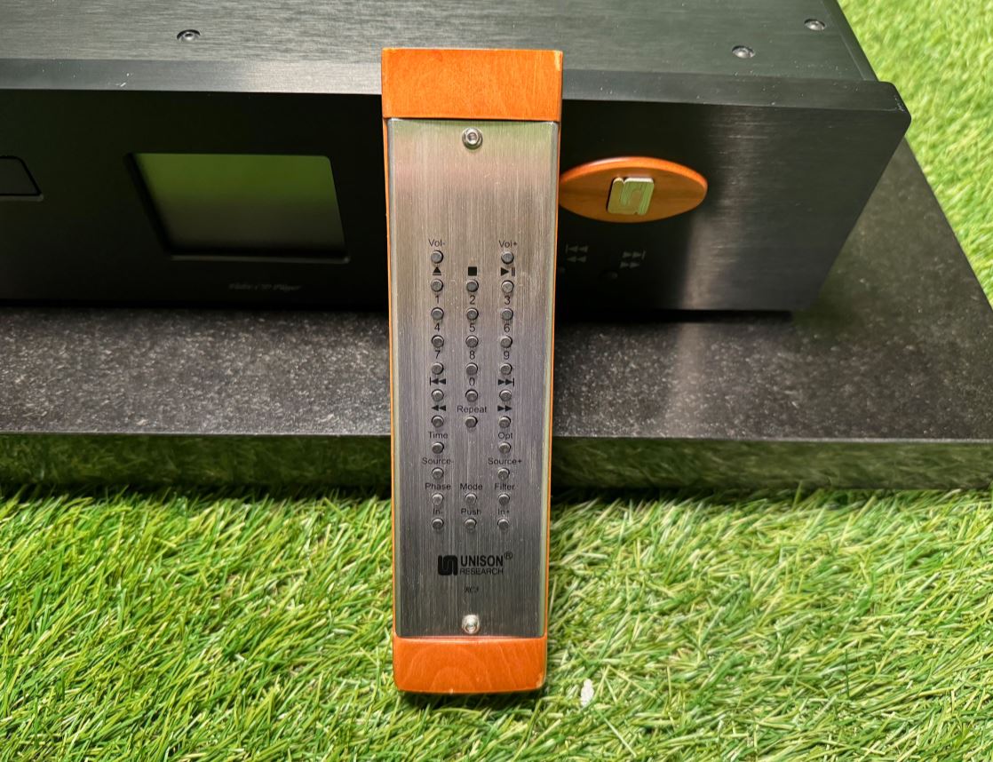 Unison Research CD Primo tube player in original packaging with wooden remote control, made in Italy.