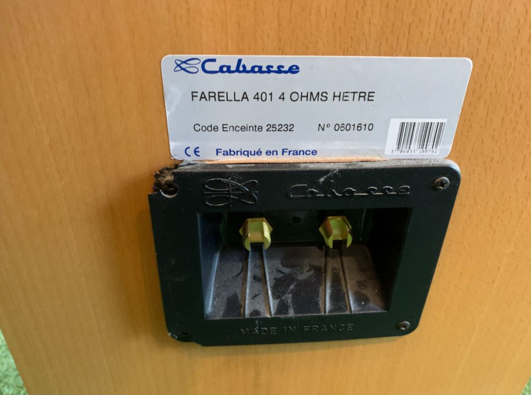 Die Cabasse Farella 401 sind sehr fein aufspielende Standlautsprecher und ideal für die Kombination mit Röhren Geräten.Top Zustand. Gleichmäßige Aufhellung des Furniers (wurden immer mit Bespannungen betrieben).Weiterführende Informationen (ohne Gewähr):Die Standlautsprecher sind ein 8-Zoll-2-Wege-System mit einer Übergangsfrequenz von 1400 Hz. Die Empfindlichkeit liegt bei 93 dB bei 1 Watt/m. Der Frequenzgang erstreckt sich von 50 Hz bis 20.000 Hz. Die Lautsprecher sind für eine RMS-Leistung von 100 Watt ausgelegt.Die Abmessungen der Lautsprecher betragen 90 cm in der Höhe, 26 cm in der Breite und 32 cm in der Tiefe. Das Gewicht beträgt 22,8 kg.