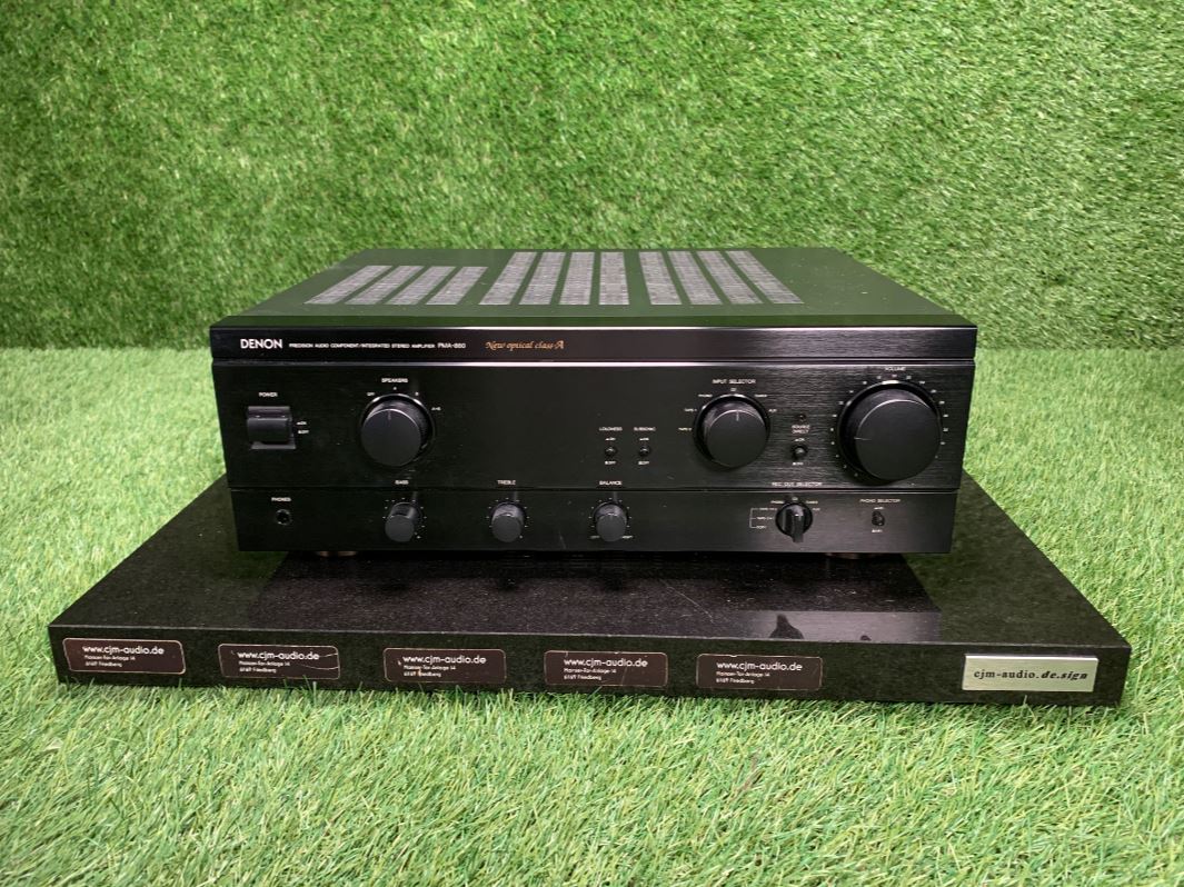 Denon PMA-860 integrated amplifier incl. phono in top condition.Further information (without guarantee):The Denon PMA-860 is an integrated amplifier that was manufactured between 1990 and 1992 and originated in Japan. It is available in black and silver and does not have a remote control. The amplifier has a power consumption of 250 W and measures 434 x 160 x 397 mm (WxHxD) and weighs 9.7 kg. The original price was about 700 DM.The PMA-860 offers a total of six inputs, including a phono input with RCA connector and ground (GND) for MM with 2.5 mV/47 kOhm and MC with 200 μV/100 ohms, a tuner input with 150 mV/47 kOhm, an AUX connector with 150 mV/47 kOhm, a CD input with 150 mV/47 kOhm and two tape inputs with 150 mV/10 kOhm each. In addition, it has three outputs, including a headphone jack (6.5 mm jack) and two speaker outputs with screw terminals.The continuous power of the amplifier is 2 x 80 watts at 8 ohms and 2 x 135 watts at 4 ohms with a distortion factor of 0.7%. The dynamic power is specified for 8 and 4 ohms. The total harmonic distortion is 0.008%. The frequency response ranges from 4 to 100,000 Hz (+0, -3 dB at 1 W). The signal-to-noise ratio is 94 dB (5 mV input level) for Phono MM, 75 dB (0.5 mV input level) for Phono MC and 110 dB for CD, tuner, tape and AUX. Stereo channel separation is also specified.Bass and treble controls are available for tone control, which allow an adjustment of ±8 dB at 100 Hz and 10 kHz respectively. In addition, the amplifier has a loudness function that amplifies +7 dB at 100 Hz and +6 dB at 10 kHz. A high- and low-pass filter (subsonic) is also available, with the subsonic filter operating at -12 dB/octave at 16 Hz. A volume attenuation switch to mute the speakers is built-in, and the PMA-860 supports direct mode (line-straight) for pristine sound.