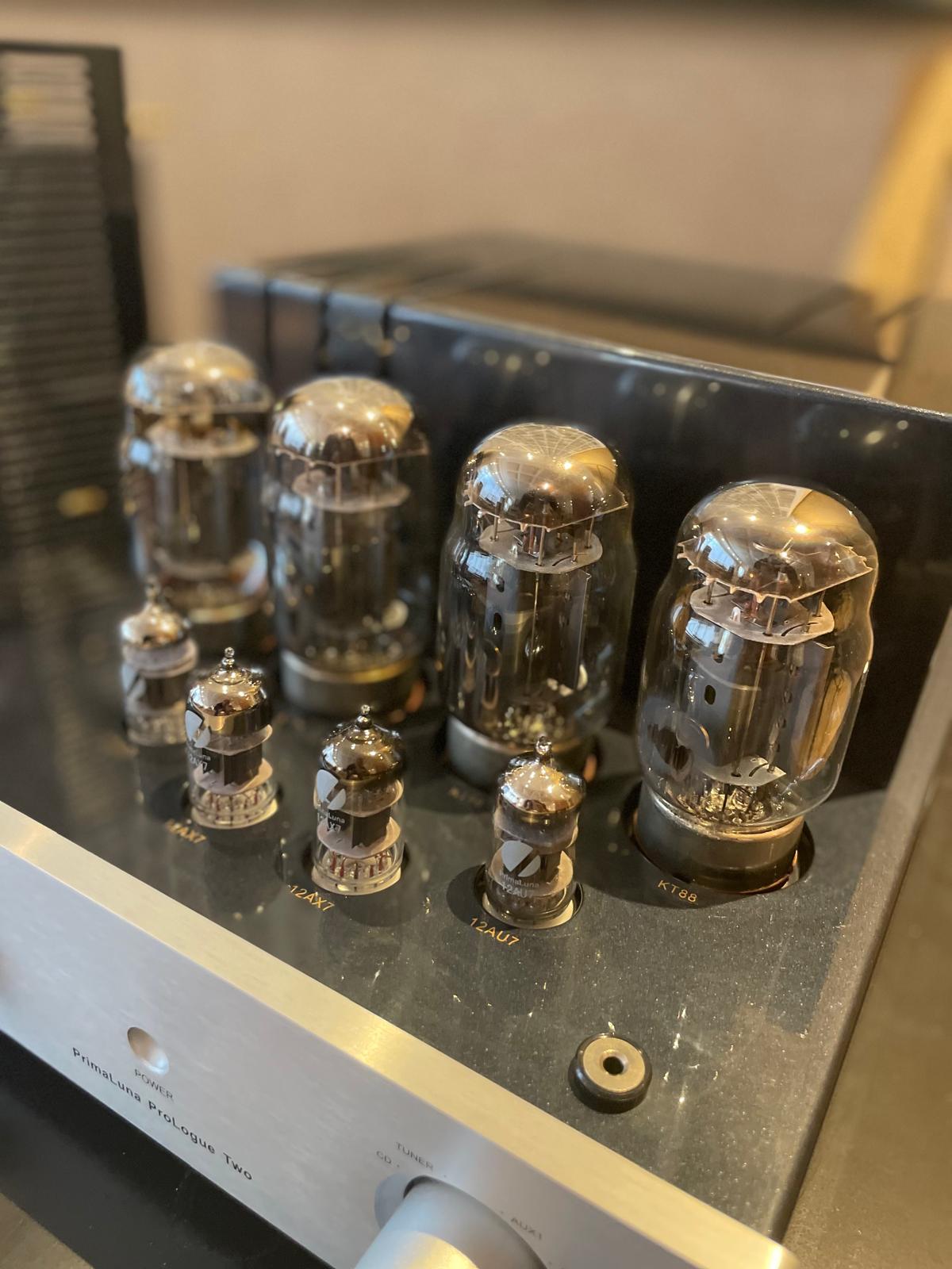 Potencia de salida 40 vatios x 2entradas 4 salidas RCAduales 4 y 8 ohmiosRespuesta de frecuencia (+/- 0,5 dB) 20Hz-30kHzTHD Menosdel 1% a plena potencia Relación S/N 89 dBSensibilidad de entrada 300mVImpedancia de entrada 65k OhmConsumo de energía 300 vatios Suplemento detubo estándar 2 - 12AX7, 2 - 12AU7, 4 - KT88Dimensiones (ancho x alto x profundidad) 28 cm x 19 cm x 39 cmPeso aprox. 17 kg