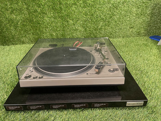Technics SL-1300 turntable with S-tonearm and Technics EPC-207C cartridge.Further information (without guarantee):The Technics SL-1300 is a turntable that was manufactured in Japan between 1975 and 1977. It is one of the classic models of the Technics brand and is characterized by its silver color scheme. The turntable has a power consumption of 6 watts in normal operation and 8 watts in automatic mode. The dimensions are 453 mm in width, 139 mm in height and 366 mm in depth, with a weight of 9.4 kilograms. The new price was about 880 DM.The Technics SL-1300 has two RCA outputs (RCA) in red and white. Technically, the model is based on a direct drive with a collectorless DC motor. The speed can be set between 33 1/3 and 45 revolutions per minute. The synchronization fluctuations are 0.025 % WRMS (JIS C5521) or ±0.035 % according to DIN. The rumble-to-noise ratio is 50 dB according to DIN 45539A and 73 dB according to DIN 45539B.The turntable is made of aluminum injection molding and has a diameter of 330 mm. The SL-1300 operates automatically, with pitch adjustable by ±5%. The tonearm is a statically balanced S-tube arm that enables a needle contact force of 0 to 3 grams. The effective axle length is 230 mm, the overhang is 15 mm, and the offset angle is 21.5 degrees. The Technics EPC-270 C-II, a magnet system, is installed ex works as a cartridge.Special features of the Technics SL-1300 are its direct drive, fully automatic operation and an integrated stroboscope for checking speed stability.