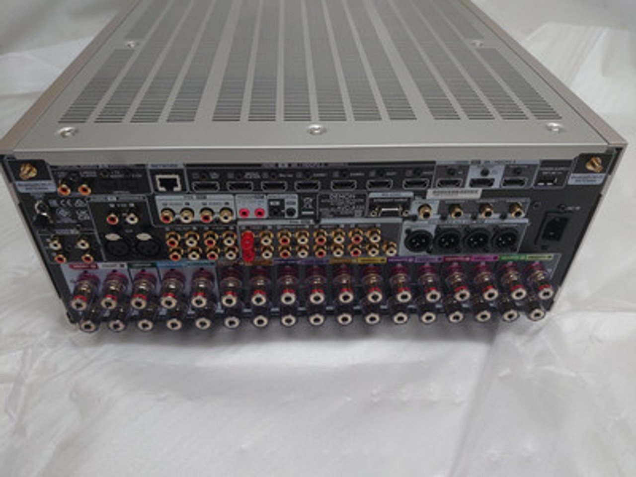 Good working order and boxed with remote. Excellent less than a year old so with 12 months warrantyThe world's first 15 channel AV receiver.AVC-A1HWith 15 channels of amplification, our most powerful transformer, carefully selected parts, and hefty, high-rigidity construction, the AVC-A1H supports up to 9.4.6 configuration and delivers a professional theatre experience in your home cinema. Designed and manufactured at Denon facilities in Japan.Ultimate 3D audio experienceExperience a new level of 3D audio entertainment with capacity for up to a 9.4.6 speaker configuration.8K readySupports 8K video with the latest 1GHz DSP and HDMI technologies.Over 32kg of powerWeighing in at more than 32kg, the A1H powers 210W per channel.Optimized for high-impact audio experiencesUnleash 15 Channel of PowerThe world’s first 15-channel AV receiver delivering up to 210W per channel.Unparalleled Quality and PerformanceThe largest power transformer we have ever used, and new, larger capacitors make AVC-A1H respond quickly and dynamically to your music to reproduce audio as the artist intended.Hi-Fi Grade ComponentsAudiophile grade two-channel DAC for all 19 channels, hefty gold-plated speaker terminals, cast iron feet, and rigid construction protects against vibration and interference, greatly reducing noise impacts.HEOS Bulit-in TechnologyStream music wirelessly to compatible HEOS-enabled components from a variety of streaming services. Add Denon Home speakers to more rooms and control it all with the HEOS app.Dirac Live UpgradeabilityDirac Live® Room Correction applies state-of-the-art, patented algorithms to analyse and digitally reduce room impact and enhance speaker performance. Upgrade subwoofer performance with Dirac Live® Bass Control.CONNECTED HOMEThe HEOS® AppBrings It All TogetherFill your entire home with stellar sound. With HEOS®, you can pair all of your Denon devices on your network to create a captivating audio experience.• Seamless multi-room audio• Vivid & spacious sound• Full voice controlStart filling your home with sound.DENON SIGNATURE SOUNDSonic InnovationFor the Past 110 YearsFor more than a century, Denon have crafted cutting-edge audio products that deliver the ultimate detail. Their Japanese heritage inspires them, and each product is hand-tuned by Denon's sound master. Prepare to hear sound differently.Denon AVC-A1H 15.4 Ch. 210W 8K AV Receiver with HEOS Built-in - Silver SpecificationsSize and WeightMaximum Dimensions | Antenna, Horizontal: (WxDxH) 434mm x 498mm x 195mmMaximum Dimensions | Antenna, Vertical: (WxDxH) 434mm x 498mm x 259mmMaximum Dimensions | Antenna, w/o Antenna:(WxDxH) 434mm x 493mm x 195mmWeight 32kgMultichannel SurroundDTS HD Master / DTS:X / DTS:X Pro Yes / Yes / YesDTS Neo:X / DTS Neural:X No / Yes (15ch)DTS Virtual:X YesIMAX Enhanced YesDolby TrueHD / Dolby Atmos / Dolby Atmos Height Virtualization / Dolby Atmos Music Yes / Yes / Yes / YesDolby ProLogic Ilz / Dolby Surround No / YesAuro 3D Yes360 Reality Audio / MPEG H Yes / YesMultichannel Stereo YesMax. Number of Processing (Pre-Amp) Channels 15.4Sound EnhancementsMono Block Power Amp Construction Yes (L/R separated)Discrete Power Amplifier YesD.D.S.C. HD Digital Yes (32 bit)Pure Direct YesGold Plated RCA Terminals YesClock Jitter Reducer YesAlpha Processing AL32 Processing MultichannelAudyssey MultEQ XT32Audyssey Dynamic EQ / Dynamic Volume Yes / YesAudyssey LFC YesDirac Live Upgradability YesCompressed Audio Restorer YesNetworkMedia Server YesHEOS Wireless Multi-Room Technology YesAlexa / Google Voice Assistant / Apple HomePod Yes / Yes / YesLossy Formats: MP3 / WMA / AAC Yes / Yes / YesLossless Formats: FLAC / ALAC / WAV Yes / Yes / YesLossless Formats: FLAC HD / WAV / ALAC (all 192kHz/24 bit) Yes / Yes / YesDSD Audio Streaming Yes (2.8/5.6MHz)AirPlay 2 YesTuneIn YesSpotify Connect YesRoon Tested YesHEOS App Control YesCompatible with Remote APP for Smart Phones Denon 2016 AVR RemoteEthernet Ports YesWi-Fi YesBluetooth YesHDMIHDMI Inputs: Back / Front 7 / NoHDCP2.3 support YesHDMI Outputs: Main / Zone 2 / 1HDMI 2.1: 8K/60Hz AB / 4K/120Hz AB Yes / YesHDR / HLG / Dolby Vision / HDR10+ / Dynamic HDR Yes / Yes / Yes / Yes / YesALLM (Auto Low Latency Mode) Pass-through for gaming YesVariable Refresh Rate / Quick Flame Transport / Quick Media Switching Yes / Yes / No3D Signal Pass-through Yes8K Signal Pass-Through / Scaling / GUI Overlay Yes / Yes / YesDSD Audio Capability YesAudio Return Channel (ARC) / Enhanced ARC Yes / YesAuto LipSync YesMulti-room CIMulti-Room Zones 3Zone Audio Source: HDMI; Optical / Coax / Network / USB; Analogue Yes (2ch) / Yes (2ch) / Yes / YesZone Audio Output: Speaker / Pre-Out Yes / YesZone HDMI Output from HDMI Source YesIP Control / RS232 Control / Web Control / App Control Yes / Yes / Yes / YesRemote In / Out Yes / YesDC Trigger Output 2HDMI Diagnostics YesOthersAuto Speaker Setup by Microphone Audyssey MultEQ XT32Dirac Live (upgrade)Front Display 2-Line FLDGUI Languages 3Setup Assistant YesQuick Select Plus / Quick Select Yes / NoVariable Crossover YesOptimised Bass Redirection YesBass Sync YesECO Mode YesAuto Power Off YesSleep Timer YesInputs/OutputsHDMI In / Out 7 / 3Multi-Room Video Out: Video / HDMI No / YesAnalogue In / Out 5 (1x XLR) / NoPhono (MM) In YesDigital In: Optical / Coaxial 2 / 2Multi-Room Out: Analogue / Digital 2 / NoMultichannel Preout Yes (17.4)Subwoofer Out 4 (independent)Speaker Terminal: Gold-Plated Screw / Regular Screw Yes / NoNumber of Speaker Terminals 17Speaker A / B AssignableBi-amp Drive AssignableMulti-Room Speaker Terminal AssignableFront Inputs: Audio / Composite / Digital (Opt) / HDMI / USB No / No / No / No / YesUSB Audio / Made for iPod / Made for iPhone Yes / No / NoAM/FM Tuner YesSpecificationsNumber of Power Amps 15Power Output (8 ohm / 20 Hz - 20 kHz / 0.05% 2ch Drive) 150WPower Output (6 ohm / 1 kHz / 0.7% 2ch Drive) 190WPower Output (6 ohm / 1 kHz / 10% 1ch Drive) 210WGeneralMetal Front Panel YesSystem Remote Control RC-
