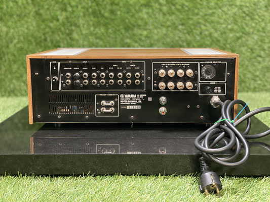 Yamaha CA 810 integrated amplifier from the Natural Sound series, built around 1977 to 1979, classic stereo integrated amplifier with solid power supply reserve and clearly structured control front. The output power is about 65 watts per channel at 8 ohms in the nominal range, correspondingly higher at 4 ohms. The amplifier works channel-separated with generously dimensioned heat sinks and switches on the speaker outputs via a protection relay. Two pairs of loudspeakers can be operated either individually or together, and typical loads of 4 to 16 ohms are permitted. The volume control has Yamaha's typical stepless loudness function for application-specific adjustment at low monitoring levels, supplemented by a switchable tone control with bass and treble as well as selectable input frequencies. In addition, a subsonic filter and a tweeter filter are available, as well as a mono switch and balance.On the input side, there are tuners, aux and two tape device paths, both with recording, switching and backband control. The phono stage offers two phono inputs for MM cartridges with practical sensitivity and standard-compliant RIAA equalization, Phono 1 with selectable load capacity for adaptation to different systems. The back panel features gold-plated RCA jacks, screw terminals for speaker cables, and a power jack. On the front is a headphone jack in a 6.3 millimeter design.The case measures about 435 millimeters in width, about 145 millimeters in height and about 390 millimeters in depth. The weight is about 12 kilograms. The front is made of brushed aluminum with clearly labeled rotary and toggle switches, the cover uses a wooden housing in the design typical of the time. The internal design with separate supply rails and low-noise phono preamplifier is designed for stable operating values and reproducible measurement data. The power button is coupled with a switch-on delay, the speakers are only switched on after stabilization.The Yamaha CA 810 is suitable as a central control and amplifier unit in classic hi-fi systems of the late 1970s. In conjunction with a turntable with MM cartridge, a tuner or tape recorder, sufficient inputs and switching options are available. The combination of two phono inputs, infinitely variable loudness and switchable sound controls covers a wide range of application scenarios, and the front of the device allows for quick and clear operation. Dimensions and connection diagram are designed for rack installation and free installation.