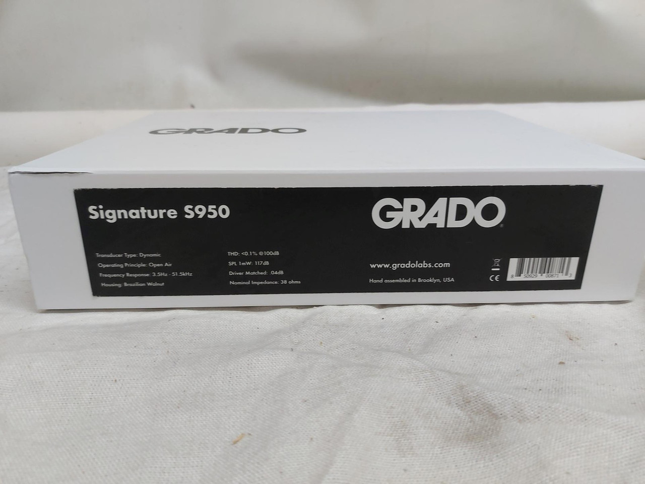 Excellent with all accessories.The Signature S950, the second in Grado’s new Signature line after the HP100 SE, features a Brazilian Walnut housing— a first for Grado. Known for its unique sonic qualities, this wood gives the S950 a distinct sound signature, contrasting the analytical HP100 SE’s machined aluminium design, while staying true to Grado’s tradition of crafting class-leading wood headphones. Made from Brazilian walnutLightweight but durable, the Signature S950 is crafted from Brazilian Walnut. Weighing only 395 grams it offers a comfortable fit and reduced fatigue for those long listening sessions. The wood grain of each individually crafted housing is never identical, bringing a special one-of-kind quality to each build. Walnut, known for its density and resistance to decay, has been chosen for a relaxed musical presentation and stability. The lack of expansion and contraction due to changes in temperature or humidity helps maintain the acoustical characteristics. Brazilian Walnut is grown in the tropical rain forests of the Amazon, and sustainable practices help protect the ecosystems in the area. New speaker designThe Signature S950 features Grado’s 52mm S driver, delivering high-frequency detail, smooth midrange, and powerful bass with minimal distortion. A paper composite cone, rare-earth magnetic circuit, and copper-plated aluminium voice coil enhance dynamics and soundstage. The S950 offers a more neutral, balanced sound for a relaxed and immersive listening experience, when compared to the HP100 SE’s detailed, revealing, and accurate performance. Quality detachable cablesThe Grado Signature S950 retains detachable cables, first introduced with the HP100 SE. The S950 includes a 6-foot, 6.3mm-terminted Grado Signature Gold cable with a softer, durable braided design and improved insulation. It connects via a 4-pin mini XLR, with future cables offering 4-pin XLR and 4.4mm balanced terminations in various lengths. These detachable cables let users customize their headphones for optimal compatibility and personal preference. Comfortable headband designThe Signature S950 features Grado’s new headband, first seen on the HP100 SE, with 50% more padding for comfort and long-listening session. A stainless-steel band and adjustable rods ensure a secure fit. Engraved aluminium-alloy gimbals and a stable stainless-steel height rod limit housing rotation to 105 degrees, reducing wear and enhancing durability.SpecificationTransducer Type DynamicOperating Principle Open AirFrequency response 3.5 Hz – 51.5 kHzTHD <0.1% @100 dBSPL 1mW 115 dBNominal impedance 38 ohmsDriver size 52mmDriver Matched dB 0.4 dBCable type 12-conductor detachableHeadphone Connection 4pin Mini XLRSource Connection 6.3 mmEarpad Supplied G Cushions and F Cushions