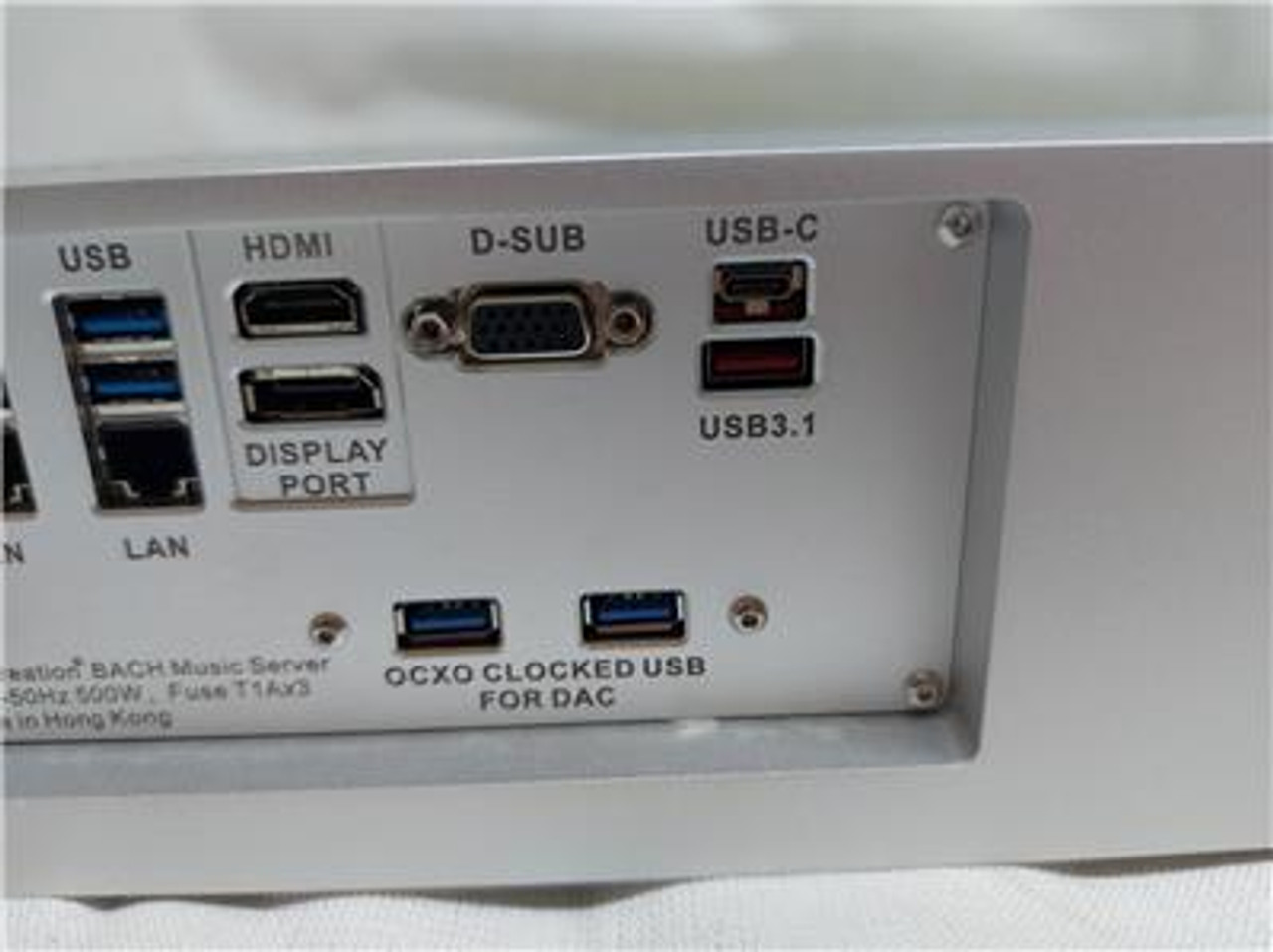 In good external pre-owned condition, with software update and new hard drive fitted.With travel case.The design goal of Bach™ as a music server is to achieve an uncharted level of harmonious and emotional engagement with the audience via the strictest standards possible to control mechanical vibration, electromagnetic interference, signal jitter and quantum noise.Key highlights of the technical design: Top quality 6061 solid Aluminum to CNC one integration chassis to reduce mechanical vibration and better EMI isolation.3 stages power conditioner with Ground choke is the first of power cleaning, no DC, EMI noise from AC main line can pass though this stage.True Linear Supply 500W made by 3 independent Toroidal Transformers, One for CPU, One for RAM ,SSD, motherboard and last one for OCXO system clock. This is the best solution for computing Power supply architecture, it is fast, no under power issue due to instantly processing power rising up.Bybee Quantum Purifier is the Spirit of power supply, it operate on the quantum mechanical level to regulate the flow of electrons that make up the signal. Current flow within the Quantum Purifier is unimpeded and ideal. During transit through the Quantum Purifier, quantum noise energy is stripped off the electrons, streamlining their flow through ensuing conductors. Unwanted quantum noise energy dissipates as heat within the Quantum Purifier rather than emerging as a layer of contamination.Red copper Fanless cooling system no mechanical vibration completely silent.Intel Xeon Powerful processing unit for extreme quality upsample to DSD512.16G DDR4 ECC RAM with error correction provide best data processing accuracyServer Grade motherboard provide ultra-stable performance.Build in Top quality CD rip function with ultra-low vibration.2 LAN port on board, support direct connect network renderer (e.g.: MSB, DCS, Weiss).OCXO system clock for extreme low jitter 0.25-0.35ps. Frequency Stability ±20 ppb Phase.Direct USB DAC output port with OCXO clock accuracy.Audio grade FI-06 NCF IEC inletAudio grade quality UPOCC internal cable, for pure power connection.Audio ground connection design for connected any Ground enhancement items for performance upgrade.2T works with SSD memory for the best performance (option upgrade up to 8T).Support external USB storage devices or network NAS.support DoP (DSD over PCM)support the loss free streaming service TIDAL, QobuzRoon music player (ready)Support Roon Bridge to combine 2 set Bach music server for Extremely listen performanceHardware:CPU Xeon16G DDR4 ECC RAM with error correction2T SSD (optional 4T,8T)CNC Fanless cooling case3 stages power conditioner with Ground chokeTrue Linear power supply with 60000uF capacitors and 3 independent Toroidal TransformersBuild in Top quality CD ripper2 LAN port on boardDirect USB DAC outputOCXO system clockUPOCC internal cableBybee Quantum PurifierAudio grade FI-06 NCF IEC inletUPOCC internal cable Software:Roon ReadyDBpowerripWindows Server 2019 Supported source formats:CDDA (Audio CD)FLACDSDIFF (DFF, non-compressed)DSFRIFF (WAV, including DXD)AIFF