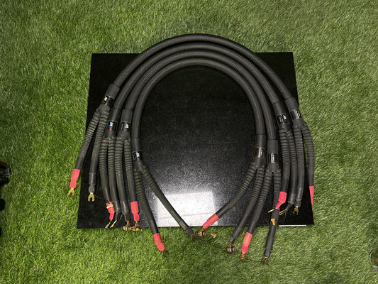 Technical data and information (without guarantee): The set offered here consists of four individual Monster Cable M2.4s speaker cables, each 1.5 m long. The M2.4s series is part of the high-quality Monster Cable Reference line and was developed in the USA to ensure maximum signal purity and minimal losses between amplifier and speaker. This version is ideal for operation in bi-amping or bi-wiring mode, but can also be used as a classic single-wire connection.The M2.4s cables use high-purity copper conductors with a special multi-stranded stranded structure to reduce skin and proximity effects. The conductors are housed in an elaborately damped insulation system with multiple shielding, which minimizes electromagnetic interference. A stable outer sheathing made of tightly braided nylon ensures high flexibility and mechanical stability. The transitions between the cable ends and the connectors are designed with solid, vibration-damped segments that prevent air and moisture from entering while ensuring a long service life.Each cable is assembled on both sides with gold-plated fork shoes (spades), which ensure low-loss signal transmission due to their large contact area and corrosion resistance. The color coding of the connectors makes it easier to correctly assign channel and polarity. Typical of the M-Series is the clear labeling of the signal direction and the series designation "M2" affixed to the shrink tubing.Due to the solid cross-section, the low capacity and the precise construction, the M2.4s is one of the most sound-neutral and technically complex cables that Monster Cable has manufactured. It was the top model in the series in the 1990s and early 2000s and was used in high-end systems with powerful power amplifiers. Specifications:Length per cable:1.5 mNumber of cables:4 single leads (2 per channel)Conductor material:high-purity OFC copper, multi-coreInsulation:multi-layer with vibration dampingOuter jacket:braided nylon protective fabricConnector:gold-plated fork shoes (spades)Usage:Single-wire or bi-amped operationSeries:Monster Cable Reference M2.4sOrigin:USA FAQ:Can the M2.4s also be used in single-wiring operation?Yes, each of the four 1.5 m cables can be used individually. Two lines are required for classic stereo operation.How do you recognize polarity?The plugs are color-coded (red for plus, black for minus). The labels "Amp" and "Speaker" also specify the signal direction.Is the M2.4s compatible with bi-amping amplifiers?Yes, the cable has been specially designed for bi-amping setups and offers optimal channel separation due to the four separate conductors. All cables offered are technically tested and come with a 12-month warranty. KV/25-V005 Our Monster Cable History shows numerous cables and accessories that have already been sold, with high-resolution images and detailed technical data – a valuable reference for collectors and interested parties.