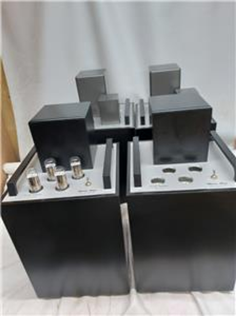 Ten years old. Very good condition with connectiing cables, and boxed in four crates.20 Watts per channelinput sensitivity 1.75 Vinterstage transformer coupledinput impedance 600 OhmSE (RCA) and BAL (XLR) inputs4 chassis (mono blocks with external power supplies)equipped with ELROG ER211801A driver tubeTango output transformer