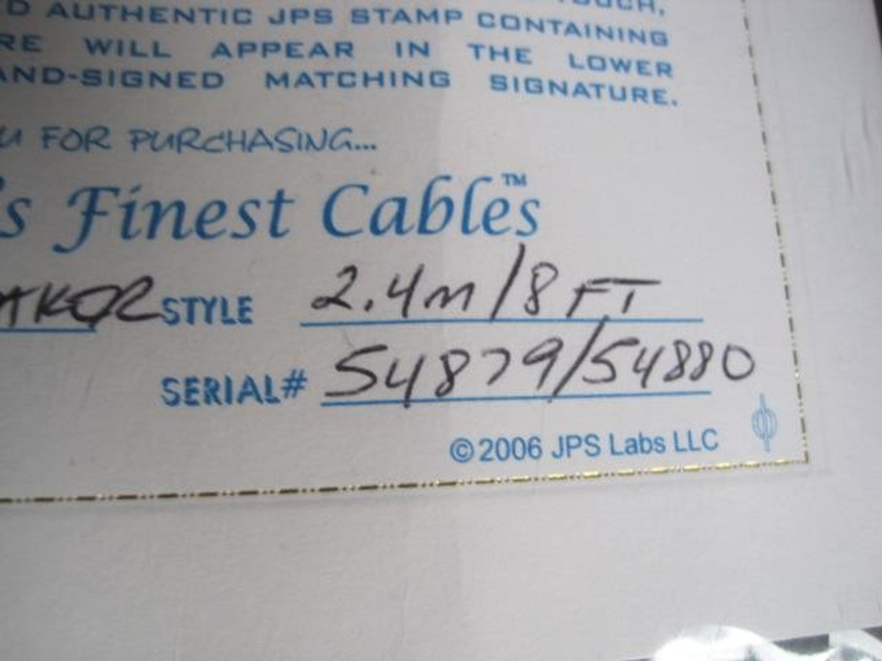 Excelente.Impresionante cable de JPS Labs. El Aluminata está sin duda a la altura de los mejores. Transparencia impresionante que es imposible de alterar, mantiene el control independientemente de lo que le arrojes. Este par está en excelente estado completo con su estuche original.Muy recomendable