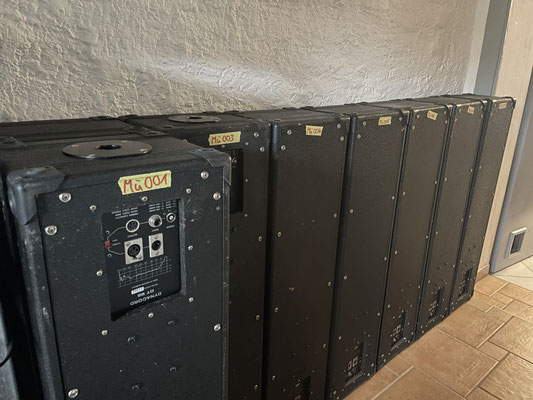 Dynacord DT 96 Loudspeakers The Dynacord DT 96 are compact installation loudspeakers for speech and music reinforcement. Depending on the version, they can be operated either in a 100-volt array or in low-impedance passive mode. Switching takes place at the connection panel. The housing is designed for permanent use and allows stable installation in different rooms. The documented condition is clearly comprehensible on the basis of the high-resolution photos. Technical data and information (without guarantee): ModelDynacord DT 96PrincipleCompact installation loudspeakerOperating modes100 V or low-impedance switchable (depending on connection panel)ConnectionsClamping terminal on the connection panelHousingRobust wooden construction with protective grilleScope of delivery9 x Dynacord DT 96ConditionUsed, testedItem numberDT96-____ Frequently asked questions Can I use the speakers on a normal hi-fi amplifier?Yes, in passive mode they work on standard power amplifiers. Please check the switching on the connection panel.What are the speakers best for?For living rooms, studios, rehearsal rooms and small sound areas.Will the exact pair pictured be delivered?Yes, the scope of delivery corresponds to the original photos. The items shown in the pictures are part of this offer. The optical condition can be traced on the basis of the high-resolution original photos. Technically tested. Each device is covered by a 12-month warranty. Mü001 - Mü009The price includes 9 x Dynacord DT96 PA speakers.