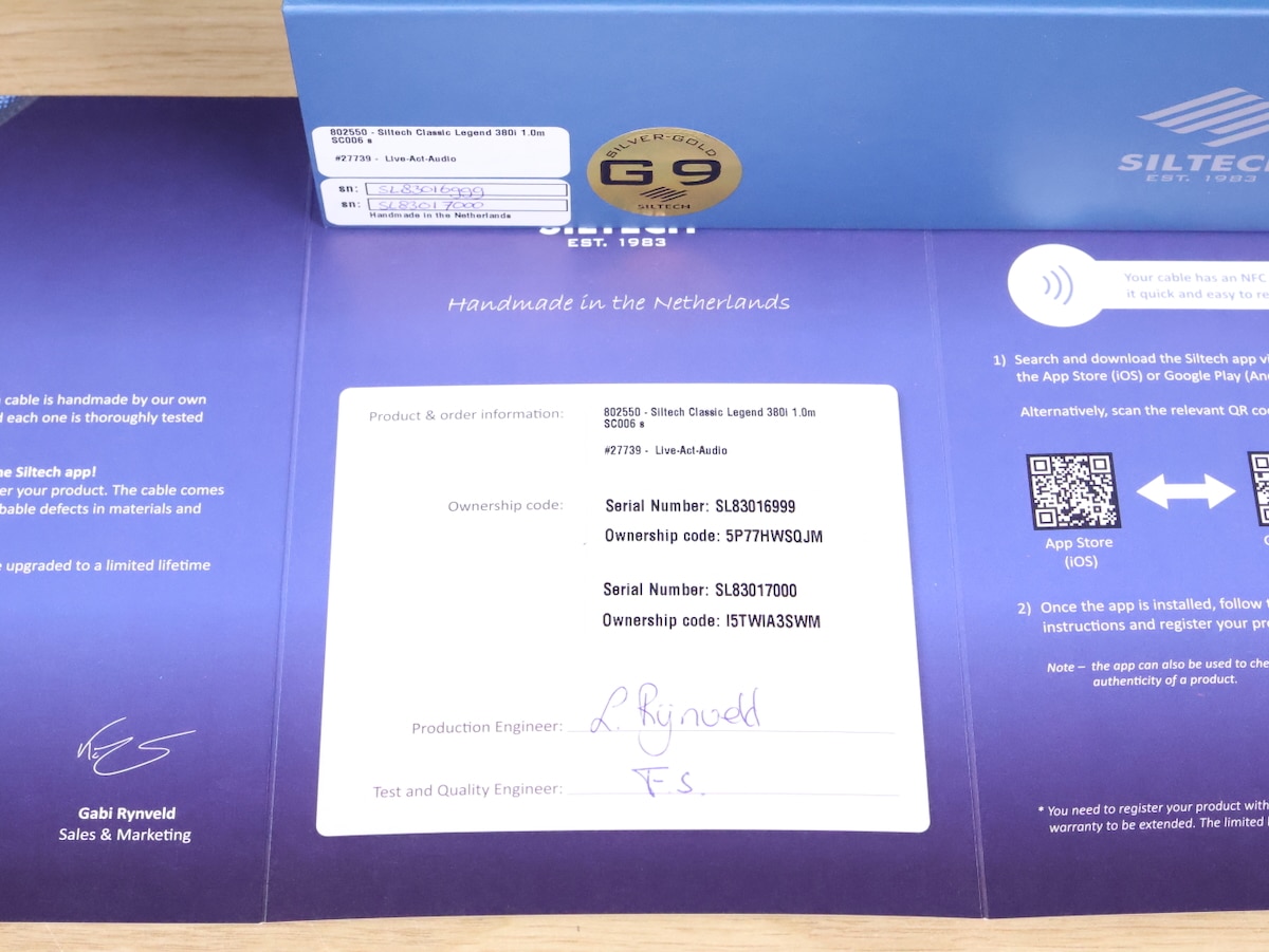 Siltech 380i Classic Legend G9 silver gold audio interconnects RCA 1,0 metre