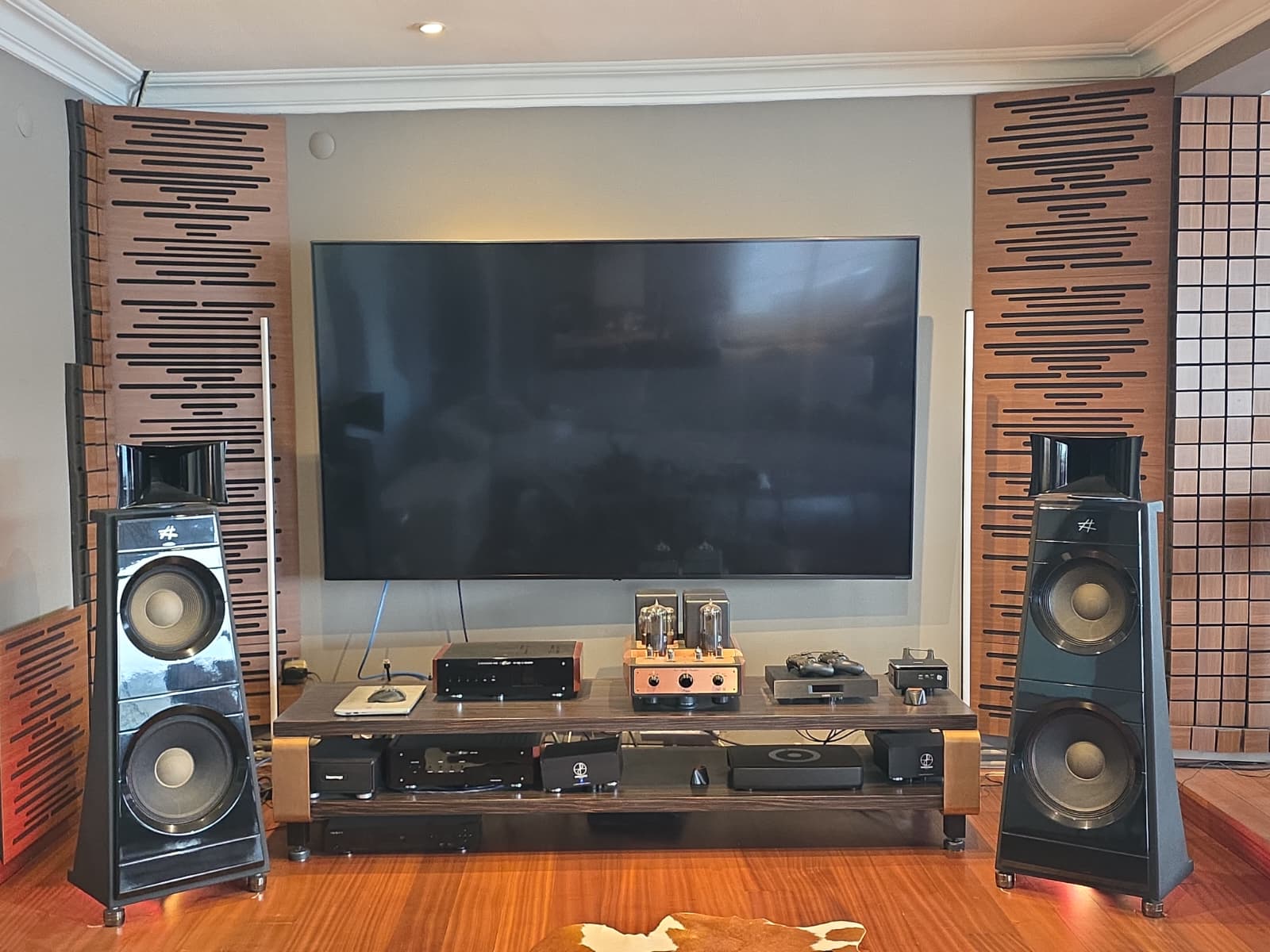 Diesis Audio Aura speakers breaths with the energy that makes music such a miracle. They are performing on the level of believability and emotional change that clearly invoke that senseless feeling of greatness and positivity happening with the experiencing music in person. Transparency, pure live energy of real high end sound..The structure of the Aura is therefore also made in CLAD 58 covered in fine eco-leather, the transducers chosen for the reproduction of the low frequencies are a 12-inch woofer for the lower range and a 10-inch for the medium-serious, being the cut of frequencies to 1,800Hz with the purpose of giving naturality to its intersection with the high frequencies, whose reproduction is entrusted to a compression transducer of one inch.The exponential horn, made by Diesis Audio specifically for this model, provides excellent off-axis dispersion. The crossover filter has a topology different from the superior model although it uses the same type and level of quality in its components, such as Mundorf Silver Gold capacitors, or Mundorf copper plate coils in series with the signal.The characteristics of its meticulous design, the typology of this avant-garde project as well as the choice of the best available materials and components allow the