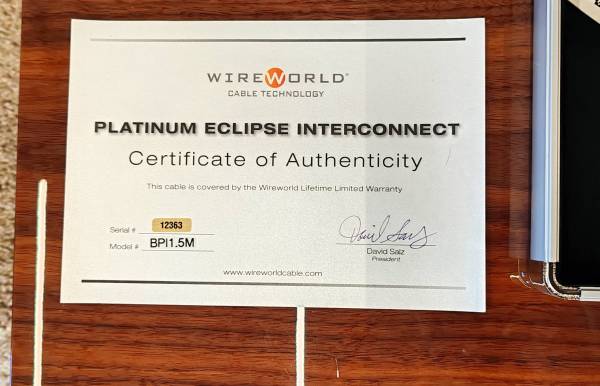 Wireworld Platinum Eclipse 7 XLR Signal Cable 1.5m, perfect, single owner, original packaging and certificate.