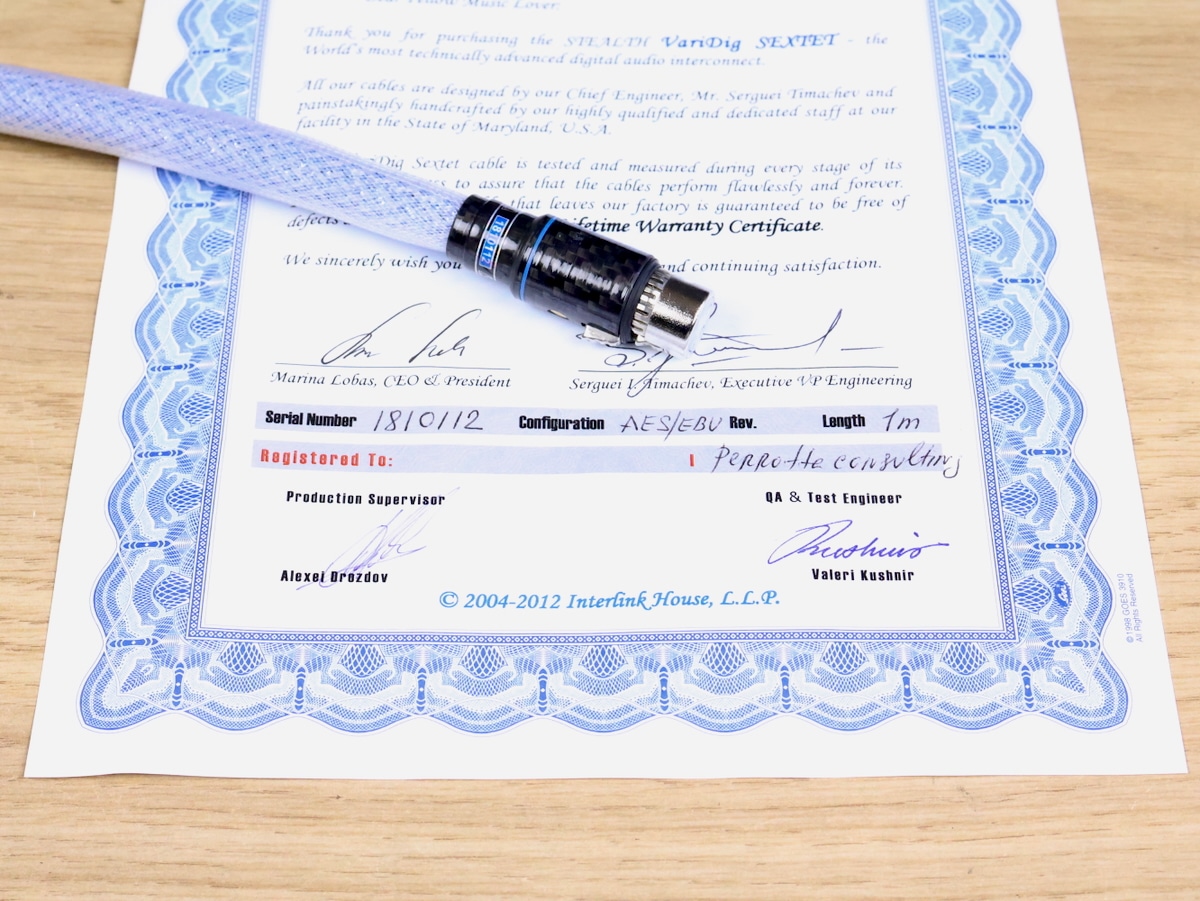 Stealth Audio Varidig Sextet high end digital audio AES/EBU interconnect XLR 1,0 metre