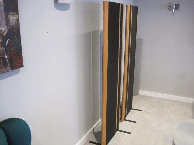 Die schönen Eichenleisten heben sich wirklich vom schwarzen Akustikstoff ab.