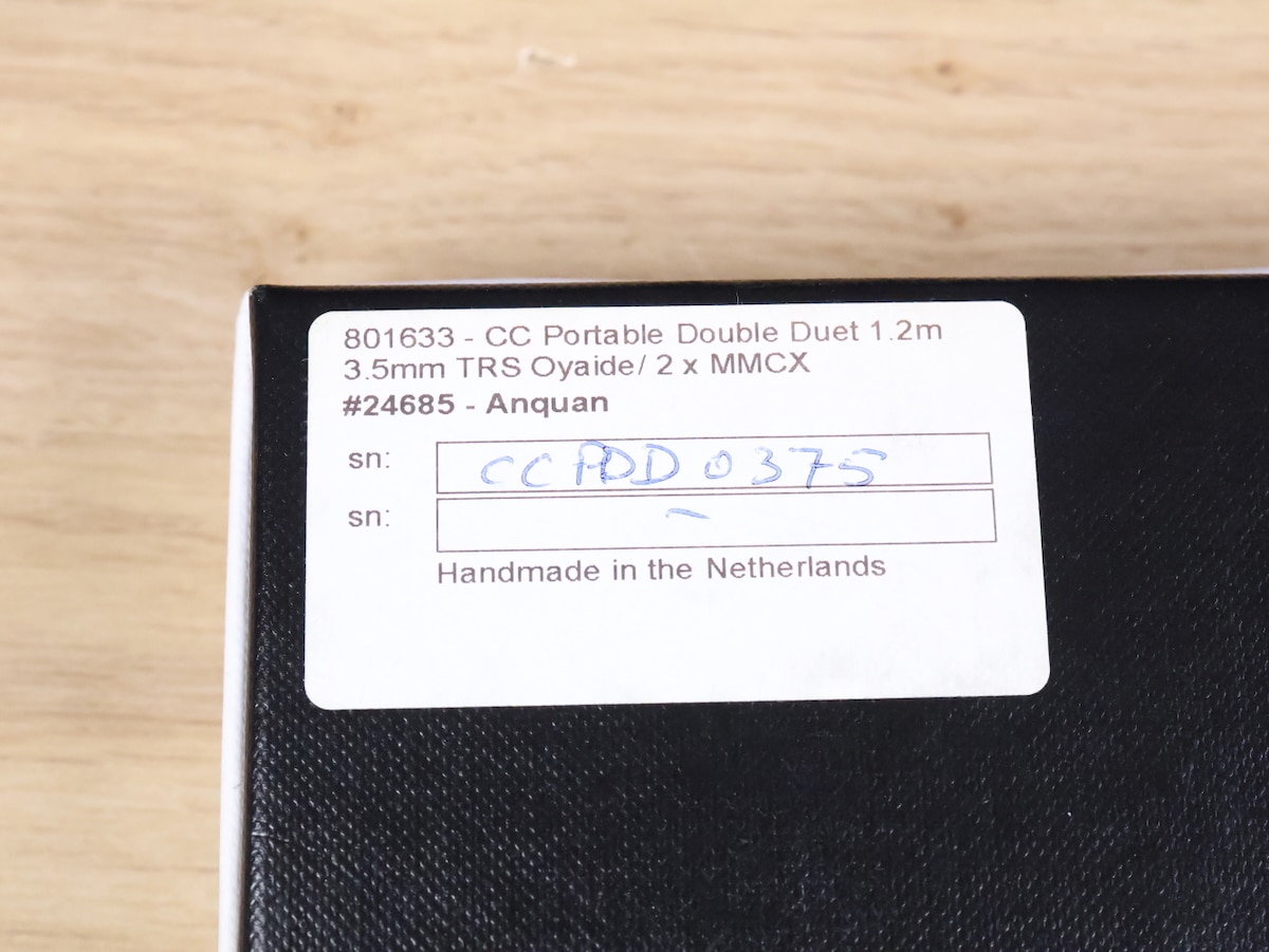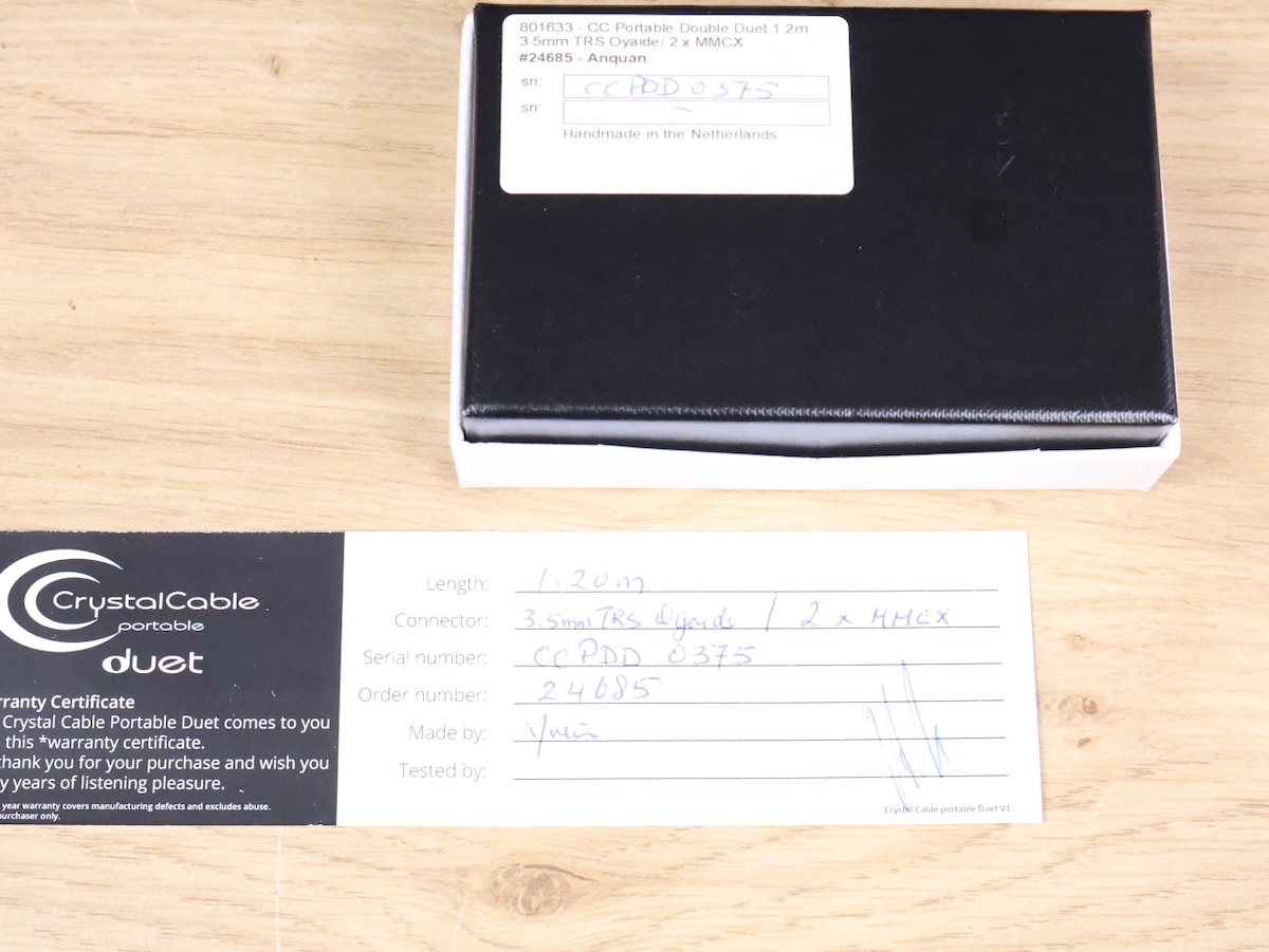 One Crystal Cable Portable Double Duet silver high end audio headphone cable in a fantastic, like new condition. The length is 1,2 metre and it has the original connectors (Oyaide 3.5mm TRS and 2x MMCX). Serial number is CCPDD0375. Retail price is 1.499 euro. The original box and certificate are included. Check our other listings for more interesting items. Free shipping worldwide!Employing the same characteristics as Duet, Double Duet is multiplying the number of conductors, resulting in more power, more definition and more detail in sound. Double Duet doubles the musical enjoyment, ensuring even more live-music experience with your portable equipment.
