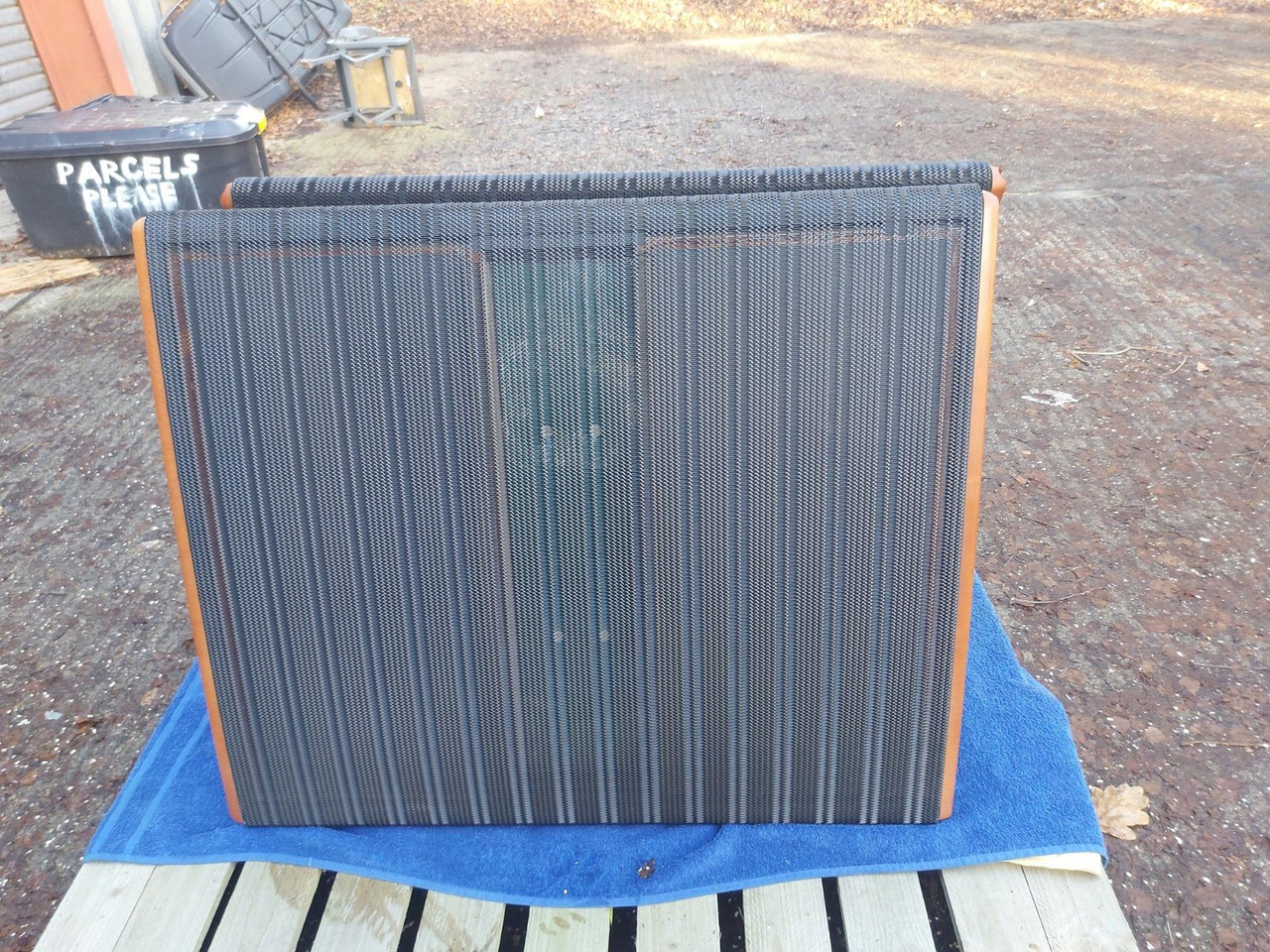 In gutem Zustand und 2022 gewartet.Neue Diskantpaneele wurden montiert.Mit Holzfüßen verpackt.Klingt großartig.