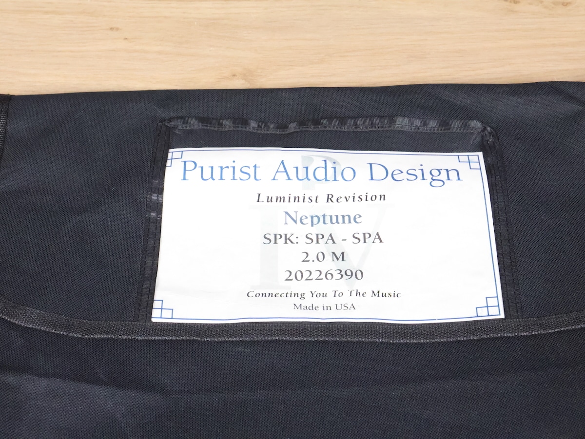 One pair of Purist Audio Design Neptune (Luminist Revision) high end audio speaker cables in a very good condition. The length is 2,0 metre and they have the original spade connectors. Serial number is 20226390. Retail price is 4.000 euro. The original packaging is included. Check our other listings for more interesting items. Free shipping worldwide!