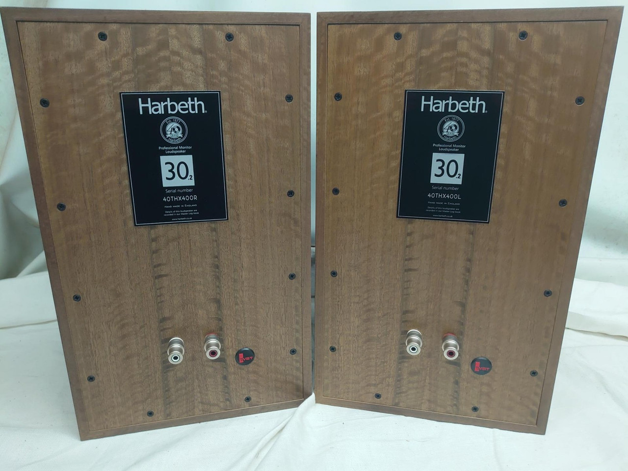 El sitio web de Harbeth Audio explica que el Monitor 30.2 Edición 40 Aniversario es una mejora tanto eléctrica como estética del Monitor 30.1 (a partir de 5499 dólares el par, según el acabado), que sigue en producción y es, a su vez, una actualización del Monitor 30 original, descrito por Harbeth como "una mejora del clásico altavoz BBC LS5/9". El Monitor 30.2 Edición 40 Aniversario se ha mejorado con bornes de conexión WBT NextGen, condensadores de cruce de polipropileno de fabricación británica y lo que Harbeth describe como "cable interno OFC ultrapuro 40 Aniversario". Las diferencias visibles incluyen una rejilla de tweeter rediseñada, insignias delanteras y traseras que proclaman su condición de edición limitada y su exclusivo acabado en eucalipto plateado.