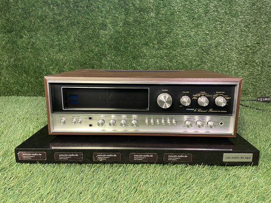 The optical condition is clearly comprehensible on the basis of the numerous, high-resolution original photos. We document each device comprehensively and show all relevant details so that the state of preservation is fully visible. Technically, all offered devices are in perfect, tested condition, unless expressly stated otherwise. Each device is covered by a 12-month warranty. Technical data and information (subject to change):The Pioneer QX-8000A is a classic Quadro receiver from the early multi-channel era. The device combines FM/AM tuner, preamplifier and four-channel power amplifier in one housing and allows either stereo or full-fledged 4-channel operation. The front panel offers separate level and tone controls for the front and rear channels, as well as an analog tuner display with signal strength and tuning meters.The connection section includes inputs for phono, tape and other line sources as well as speaker terminals for front and rear speakers. The solid wooden housing with aluminium front panel is designed for stationary living room use. The QX-8000A was developed for users who want to combine classic Pioneer quadrophony with a wide range of connection options. ModelPioneer QX-8000ADevice TypeQuadro ReceiverChannels2-Channel / 4-Channel Switching OperationOutput Powerapprox. 4 × 20 W (manufacturer's specifications vary according to standard)InputsPhono, Tape, Aux / LineOutputsTape Out, Speaker Connections Front/RearTunerFM/AM with Analog ScaleHeadphonesFront DimensionsW × H × Tca. 520 × 165 × 390 mmWeightapprox. 17 kgProduction periodapprox. early 1970sversionaluminum front, wooden housing Frequently asked Isthis device fully functional?Yes, this specimen is in perfect technical condition, unless expressly stated otherwise.Will this device be inspected before shipping?All offered devices are tested and documented before delivery.Is there a warranty?Our warranty of 12 months applies. 12 months warranty in perfect function. The condition can be seen from the original photos.