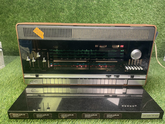 Der Loewe Opta ST 80 ist ein klassisches deutsches HiFi Steuergerät mit großflächiger Skalenanzeige und Tastensatz, wie er für die späten 1960er Jahre und frühen 1970er Jahre typisch ist. Das Gerät kombiniert einen Mehrbereich Tuner mit einer umfangreichen Bediensektion und wurde als zentrale Einheit für den Betrieb mit externen Quellen und Lautsprechern konzipiert. Die frontseitige Skala ist in mehrere Bereiche gegliedert und deckt UKW sowie Langwelle, Mittelwelle und mehrere Kurzwellenbereiche ab. Die Senderabstimmung erfolgt über den großen Drehknopf, die Bandwahl und Funktionswahl über die rechts angeordneten Tasten.Auffällig ist die klare, funktionale Bedienlogik mit separaten Schiebereglern für Klang und Lautstärke. Links sind Bass, Präsenz und Höhen sowie die Lautstärke als Schieberegler ausgeführt. Zusätzlich ist eine Balance Regelung vorhanden. Der Tastenblock unterhalb der Skala dient der Funktionsumschaltung und Quellenwahl. Die Beschriftungen am Gerät weisen auf mehrere Eingangsarten und Betriebsarten hin, unter anderem UKW, Langwelle, Mittelwelle sowie weitere Programmpositionen und Speicherplätze.Das Gehäuse ist als Tischgerät ausgeführt und besitzt eine Holzoptik, die sich optisch in klassische deutsche HiFi Anlagen dieser Zeit einfügt. Die auf den Bildern gezeigten Geräte sind Bestandteil dieses Angebots. Der optische Zustand ist anhand der zahlreichen, hochauflösenden Originalfotos eindeutig nachvollziehbar. Technisch befinden sich alle angebotenen Geräte in einwandfreiem, geprüftem Zustand, sofern nicht ausdrücklich anders angegeben. Technische Daten und Informationen (ohne Gewähr): ModellLoewe Opta ST 80GeräteartHiFi Steuergerät mit Mehrbereich TunerEmpfangsbereicheUKW, Langwelle, Mittelwelle, KurzwelleBedienungSenderabstimmung per Drehknopf, Funktionswahl per TastensatzKlangregelungSchieberegler für Bass, Präsenz, Höhen, zusätzlich Balance und LautstärkeSkalenanzeigeMehrfarbige Skala mit BandmarkierungenNetzanschluss230 V Wechselstrom Häufig gefragtIst das ein reines Radio oder eine zentrale Steuer Einheit.Der ST 80 ist als HiFi Steuergerät ausgeführt und kombiniert einen Mehrbereich Tuner mit einer umfangreichen Bediensektion für verschiedene Betriebsarten und Quellen.Welche Wellenbereiche sind verfügbar.Auf der Skala sind UKW, Langwelle, Mittelwelle sowie mehrere Kurzwellenbereiche ausgewiesen.Ist das Gerät geprüft und funktionsfähig.Ja, alle angebotenen Geräte funktionieren einwandfrei und werden mit 12 Monaten Gewährleistung angeboten, sofern sie nicht ausdrücklich als defekt gekennzeichnet sind. Alle angebotenen Geräte funktionieren einwandfrei und werden mit 12 Monaten Gewährleistung angeboten, sofern sie nicht ausdrücklich als defekt gekennzeichnet sind.
