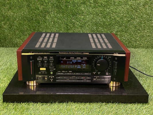 The optical condition is clearly comprehensible on the basis of the numerous, high-resolution original photos. We document each device comprehensively and show all relevant details so that the state of preservation is fully visible. Technically, all offered devices are in perfect, tested condition, unless expressly stated otherwise. Each device is covered by a 12-month warranty. The Fisher RS-Z1 is a classic AM/FM stereo receiver from the renowned "Professional Digital Reference" series of the early 1990s. It combines a powerful amplifier section with extensive reception technology, digital interfaces and analog inputs. The receiver is ideal for demanding hi-fi systems and offers a variety of connections for turntables (MC/MM), CD players, DAT or other players. The amplifier stage delivers high output power, combined with low distortion and well-controlled bass, resulting in a powerful and musical listening experience. The integrated FM section is sensitive and can be used with either narrow or wide IF bandwidth, which increases reception flexibility. The operation is logically structured, and the device can be intuitively connected and used both analogue and digital. :contentReference[oaicite:1]{index=1} Technical data and information (without guarantee):ModelFisher RS-Z1TypeStereo ReceiverOutput Power150 W per channel into 8 Ω (20 Hz–20 kHz)Distortion (THD)0.007 % (8 Ω)Frequency Response20 Hz–20 kHzPhonoMC / MM InputsDigital InputsCoaxial + OpticalTunerAM/FM with i.f. Bandwidth SwitchDimensions (W×H×D)approx. 480 × 165 × 440 mmWeightapprox. 21 kg Frequently asked Whatpower does the receiver deliver?The RS-Z1 delivers up to 150 W per channel into 8 ohms over the entire audible range, with very low distortion and good dynamics. :contentReference[oaicite:2]{index=2}What inputs are there?In addition to phono for MC/MM, analog line inputs and digital coaxial and optical inputs are available.Is FM tuner good?Yes, with selectable i.f. width and good sensitivity, the built-in FM/AM tuner offers flexible reception options. :contentReference[oaicite:3]{index=3} All offered devices are technically tested and fully functional, unless expressly marked as defective. This device is covered by a 12-month warranty.