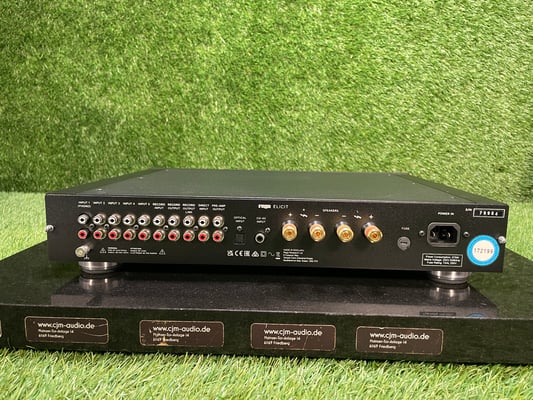 The Rega Elicit MK5 is a classic integrated integrated amplifier manufactured in the UK and represents the current development stage of the Elicit series. With this model, Rega consistently pursues the goal of combining a high-performance analogue amplifier section with a clearly structured, durable design. The Elicit MK5 is manufactured entirely in England and is aimed at users who are looking for a purist, technically clean solution without additional digital functions.The design of the Elicit MK5 is based on a discretely designed Class-AB power amplifier with a generously dimensioned toroidal transformer. The power supply is designed for high stability and fast pulse processing to ensure controlled power output even with demanding speaker loads. The preamp section is completely analog and deliberately dispenses with integrated digital converters or network functions.A key feature of the Rega Elicit MK5 is the integrated phono preamplifier for MM cartridges, which is based on Rega's many years of experience in the turntable sector. This allows the amplifier to be operated directly with a turntable without the need for an external phono preamp. In addition, several high-level inputs are available for classic sources such as CD players, tuners or tape machines.The housing design follows Rega's typical philosophy of a mechanically stable, low-resonance design. It is operated via clearly defined knobs and buttons on the front, supplemented by a system remote control supplied. The connection section on the back is clearly structured and designed for long-term operational reliability. Technical data and information (subject to change) Type of deviceIntegrated amplifierManufactureEnglandAmplifier principleClass AB, discrete outputpowerapprox. 105 W per channel into 8 Ohmphono inputMM integratedHigh-level inputsMultiple line inputs RCASpeaker connections2 pairs of screw terminalsRemote controlYes, system remote controlMains connection230 V EU versionDimensionsapprox. 432 x 82 x 340 mmWeightapprox. 12.5 kg Frequently Asked QuestionsIs an external phono preamplifier necessary?No. The Rega Elicit MK5 has an integrated MM phono input and can be operated directly with a suitable turntable.Is a digital-to-analog converter integrated?No. The Elicit MK5 has a consistent analog design and deliberately avoids DAC or streaming functions.Is the device designed for continuous operation?Yes. The design, cooling, and power supply are designed for long-term, stable operation. All equipment offered is in tested, perfectly working condition, unless expressly stated otherwise. This device is covered by a 12-month warranty.
