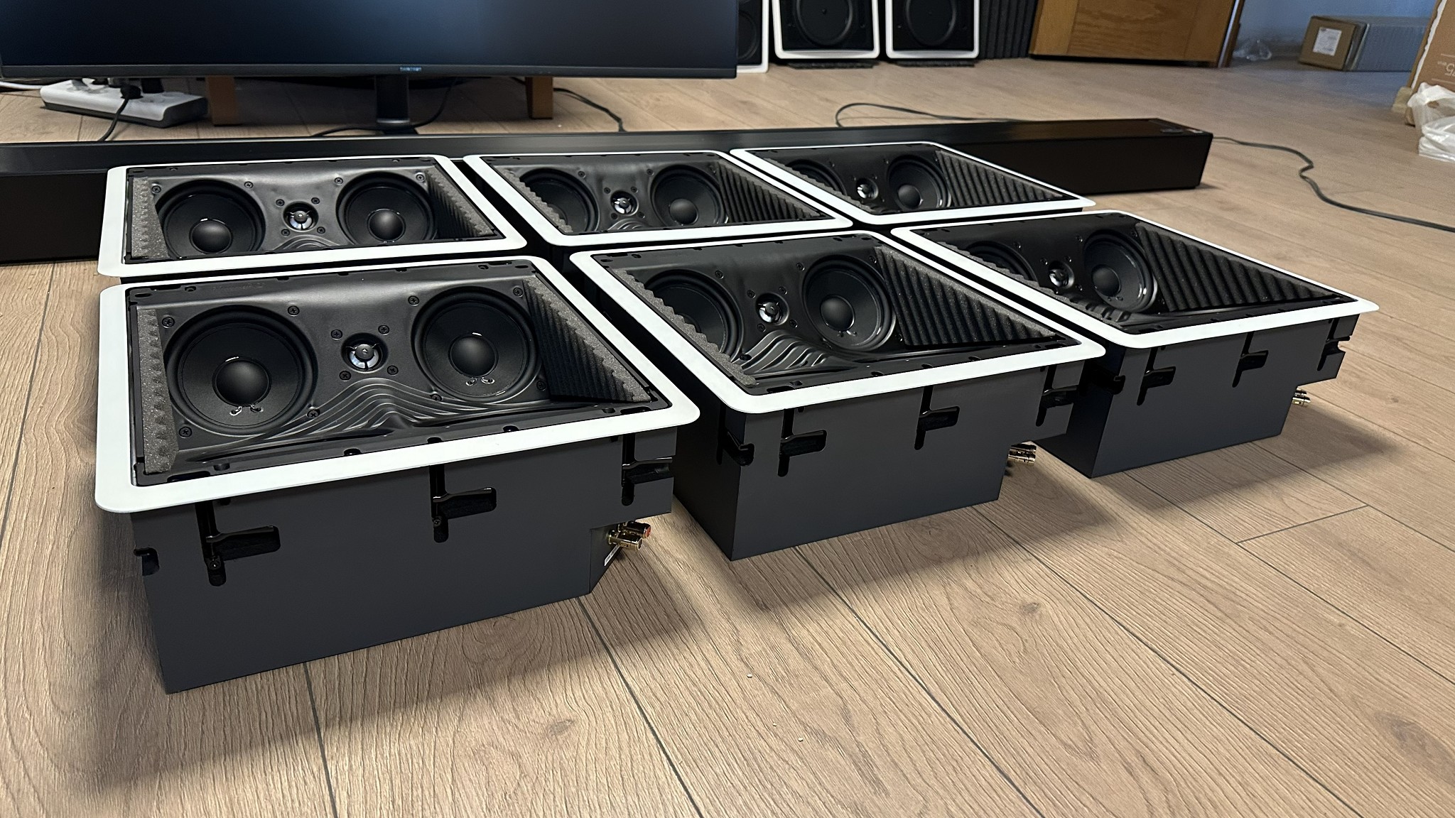 Definitive Technology's top-of-the-line Reference series is a complete 18-speaker built-in cinema system consisting of 16 channels, dual center speakers, and 4 subwoofers. It's the pinnacle of this industry. All speakers were specially imported from abroad. This is not a set you can find here. Please check international prices…!All speakers have front grilles. You can paint them in any color you want. The set includes the following products. Please check international prices.4x RLS II (Front L-R + Center + Center Height)2x RSS II (Surround L-R)2x RSS III (Back L-R)6x RCS II (Atmos)4x IW Sub10 (Subwoofer)