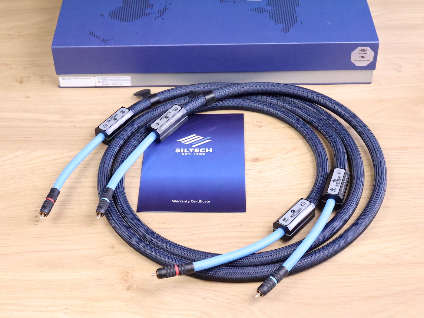 One pair of Siltech Ruby Crown S10 40th Anniversary high end audio interconnect cables in a good condition. The length is 2,0 metre and they have the original Siltech SST RCA connectors. Retail price is 8.995 euro. The original box and certificate are included. Check our other listings for more interesting items. Free shipping worldwide!Siltech’s newest S10 monocrystal silver is the pinnacle of the cable design and manufacturing. The single continuous crystal metallurgy eliminates boundaries for the lowest possible distortion. By using proprietary sophisticated annealing processes, they produced larger and more consistent crystal structures, reducing the discontinuities in the signal path. The result is exceptional openness, detail, musicality and an extraordinarily realistic sound.