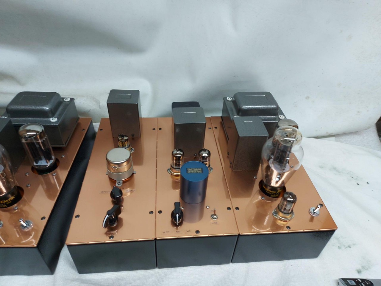 Very good with 300BsOtoman Labs mm/mc/ line transformer coupled valve preamp - 2 monos!OTOMON LAB The six sense LCR preamp with 300B tube as voltage regulatorLCR tube preamp with using 300B tube in output stage. Phono is LCR block.In pre amp stage, prestage tube is 417A. LCR block used 2x 12AX7. LCR block was added sothat buyer can use this with phono.- There are 3 blocks separately each channel, total 6 blocks, main amp block, power supply block and LCR block- Low output impedance 150ohm for AUX and 600ohm for phono stageYou can order MC step up transformer so that you can use with MC cartridges.You can order to use another tube for prestage or AUX line output.Specification:Preamp:Response frequency: 16Hz ~ 80KhzTHD: 0.1%Hum level: under 0.1mVLCR phono stage:Response frequency 16Hz ~35Khz (-1db)THD:0.1%Hum level: -85db