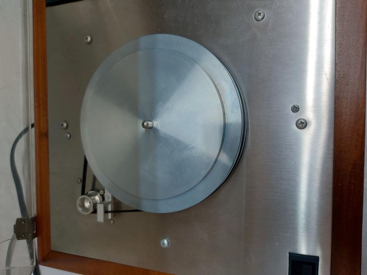 Old Linn with old style hinges. There is a small crack in lid. Spare lid is included but it needs polishing.Valhall PSU has been recapped.