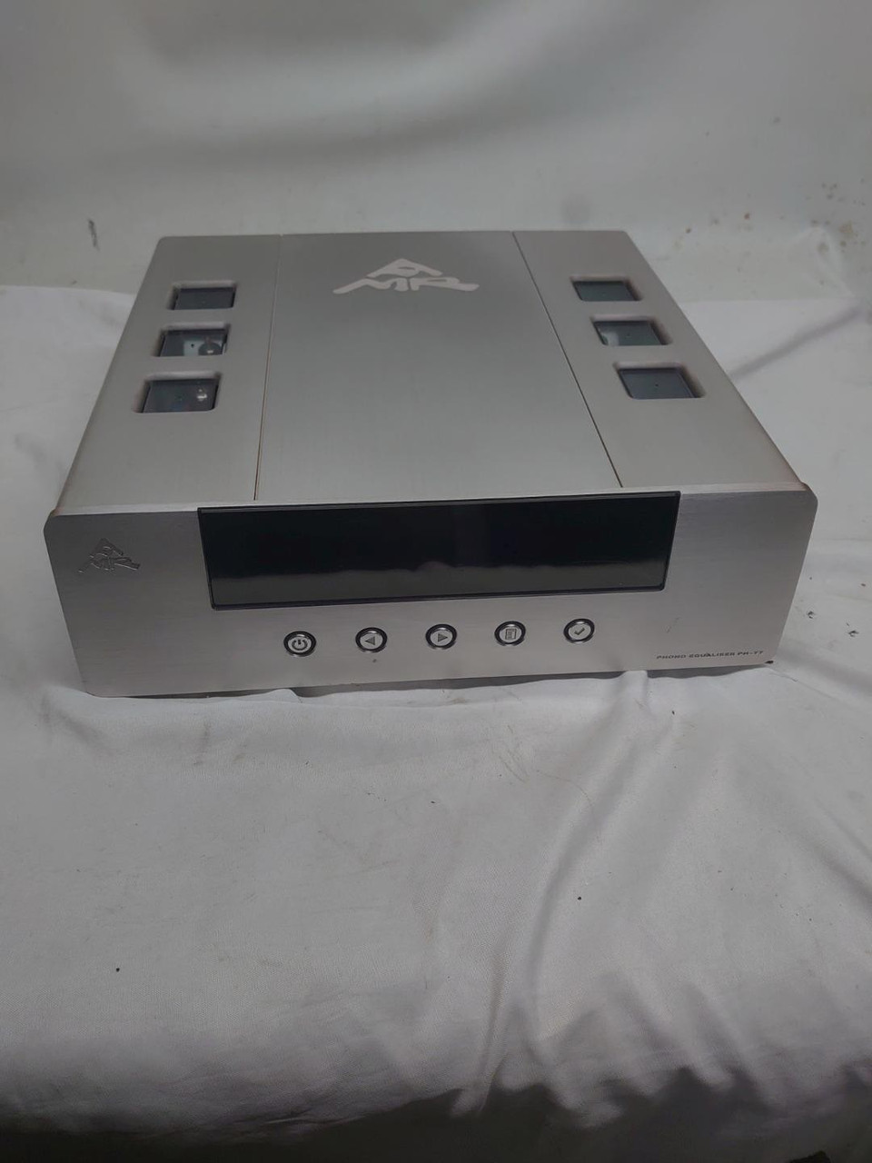 Excellent except for scratch on front panel.With Digital Out.The PH-77 Phono Equaliser from AMR is a premium, high-spec vinyl player that puts the groove back into your vinyl. With its in-built Analogue-to-Digital audio converter, the PH-77 is one of the most sought-after vinyl players on the market.here are excerpts of a steve hoffman reviewThis is the quietest tube phono stage I have ever heard and in addition to an RIAA EQ curve it has 22 others that are selectable on the fly by remote and has tons of cartridge loading options- including presets for hundreds of cartridges including my Van den Hul Colibri. From the manufacturers website:Complete Catalogue of 23 Equalisations CurvesContrary to common perception, the introduction of the RIAA Equalisation in 1954 did not result in all LP’s being cut using this standardised Equalisation Curve. Even as late as the 1980’s, several significant record labels (including USA ones) continued to use equalisation curves that differed from the RIAA suggestion. In addition, many original “all time classic” issues precede the widespread adoption of the RIAA Equalisation standard and so, require a particular equalisation curve.[IMG]All such LP’s cannot be reproduced correctly with a phono stage offering only RIAA Equalisation. The PH-77’s OptiEQ allows the selection of 23 different EQ curves in real-time via remote control. This covers all known LP vinyl ever pressed, a true first among reference phono amplifiers.[IMG]One may now finally listen to vinyl recordings the correct and original way such as:The original Mercury Living Presence series (Decca FFSS, Decca FFRR EQ)The original Deutsche Grammophon Classical records (Decca FFSS, Decca FFRR, CCIR EQ)The original Miles Davis records (Columbia EQ)Verve Jazz records, with performers like Charlie Parker, Count Basie, Ella Fitzgerald, Nina Simone and The Righteous Brothers etc. (Columbia & AES EQ)The original Dave Brubeck Quartet records (Columbia EQ)A significant number of the original stereo Decca (Europe) records (Decca FFSS, Decca FFRR EQ)Rectify high frequency roll-off and excessive phase shift of all, including Neumann and Western Electric vinyl cutting lathes (Enhanced RIAA EQ)This list* is far from comprehensive but sheds some light on how the magical musical performance of such coveted recordings has never been fully realised until now.*: The labels on the list also issued many records based on the RIAA equalisation as well.Unorthodox Signal Path Design and Bespoke ImplementationThe PH-77 boasts only two gain stages that incorporate a total of 6 electron valves (3 per channel). It is a purist’s valve phono stage aimed at reproducing vinyl to the very highest level but with flexibility of adjustment of gain/load over a very wide range: The 1st Gain Stage is a hybrid comprised of one half which was adapted from "Advanced GAmma Tracking Array" (AGATA) pre-amplifiers designed in the UK. The other half is the NOS Mullard ECC81/12AT7 to form a fully direct-coupled stage with no negative feedback. Pure passive RC record equalisation2 (including the standard RIAA equalisation) is then performed using 26 silver foil coupling capacitors.The 2nd Gain Stage uses the NOS Philips 5687WB electron valve for gain and to also provide a low output impedance for the PH-77 (<200Ohm). This stage has its cathode directly connected to the signal ground (no resistor or coupling capacitor). Bias is supplied by a fixed voltage. Following this, the signal is then passed through a directly coupled film & tin foil coupling capacitor of the highest quality to the output.The PH-77 is a pure single-ended, class A, zero negative feedback design. All low level signal connections including the cartridge are coupled directly. Only two coupling capacitors are employed overall. One is a custom made silver leaf capacitor that follows the equalisation block. The output capacitor is the same German-made film and foil capacitor as used in the multiple award winning CD-77 CD-Processor. The circuit is designed to preserve absolute polarity at all gain levels and for all equalisation settings.All valves used in the PH-77 are rare NOS valves, e.g. Mullard ECC81/12AT7(2 pcs), and Philips 5687WB(2 pcs), EZ80(2 pcs).The EQ section (including RIAA) is made up of custom-made silver leaf capacitors selected to less than 1% tolerance. For the standard RIAA EQ, all parts are directly soldered into the circuit using silver solder. The parts adjusting the historical curves are then switched into the circuit by gold over solid silver contact relays to ensure the best possible analogue performance with all EQ curves.In order to ensure that any remaining dielectric effects in the capacitors are minimised, all capacitors carry bias voltages many times that of the signal voltage applied. This unusual approach operates the capacitors in a mode that is similar to single-ended Class A operation for amplifiers, to attain maximum linearity at incredibly low signal levels.The end result is a signal path that preserves the purity of the music that is second to none.Dedication to Purity of the Power SupplyThe PH-77 uses sonically superior valve based rectification with NOS EZ80 (2pcs) and 2 x double C-core 20H choke filtering implemented fully dual mono, for the absolutely best possible power supply quality.Conventional power supply regulation, valve or solid-state based, invariably uses negative feedback, which frequently results in sonic degradation of the signal circuit.Instead of traditional regulators, the PH-77 employs a far more elaborate set of 4 virtual battery supplies, which are characterised by zero negative feedback and lowest possible noise. These are followed by a further 28 stages of passive power supply filtering, 8 of them utilising very costly large value film capacitors for the highest sound quality.The resultant power supply allows the delicate signal circuit to work unperturbed by any power supply issues, giving the PH-77 a supr