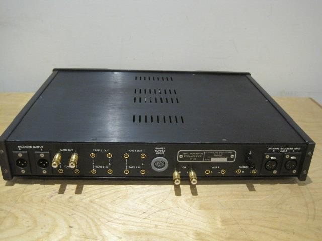Mark Levinson NO' 26L ön amplifikatör, fono aşamalı çok değer veriyor. Güç kaynağı ve bağlantı kablosuyla tam çalışır durumda. Dört Camac konnektörü dahildir, bunlar güç amplifikatörü ve bir kaynağa bağlanmak için yeterli. Genellikle daha fazlasını çevrimiçi bulabilirsiniz.Mükemmel bir ön amplifikatör ve fono aşaması da çok iyi. Yaşa göre orantılı bazı çizikler ve izler var. Fotoğraflara bakınız.Genel olarak iyi durumda.