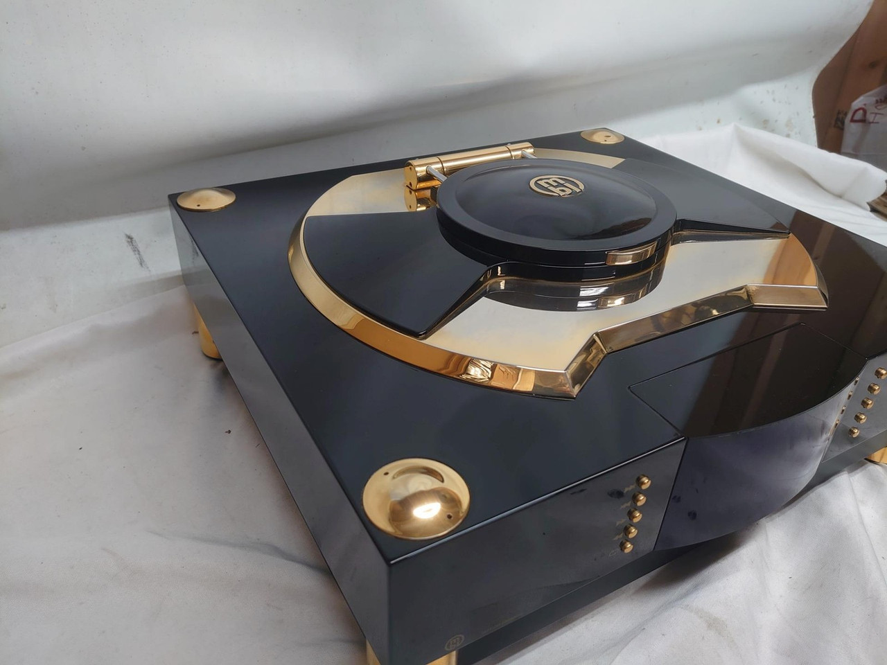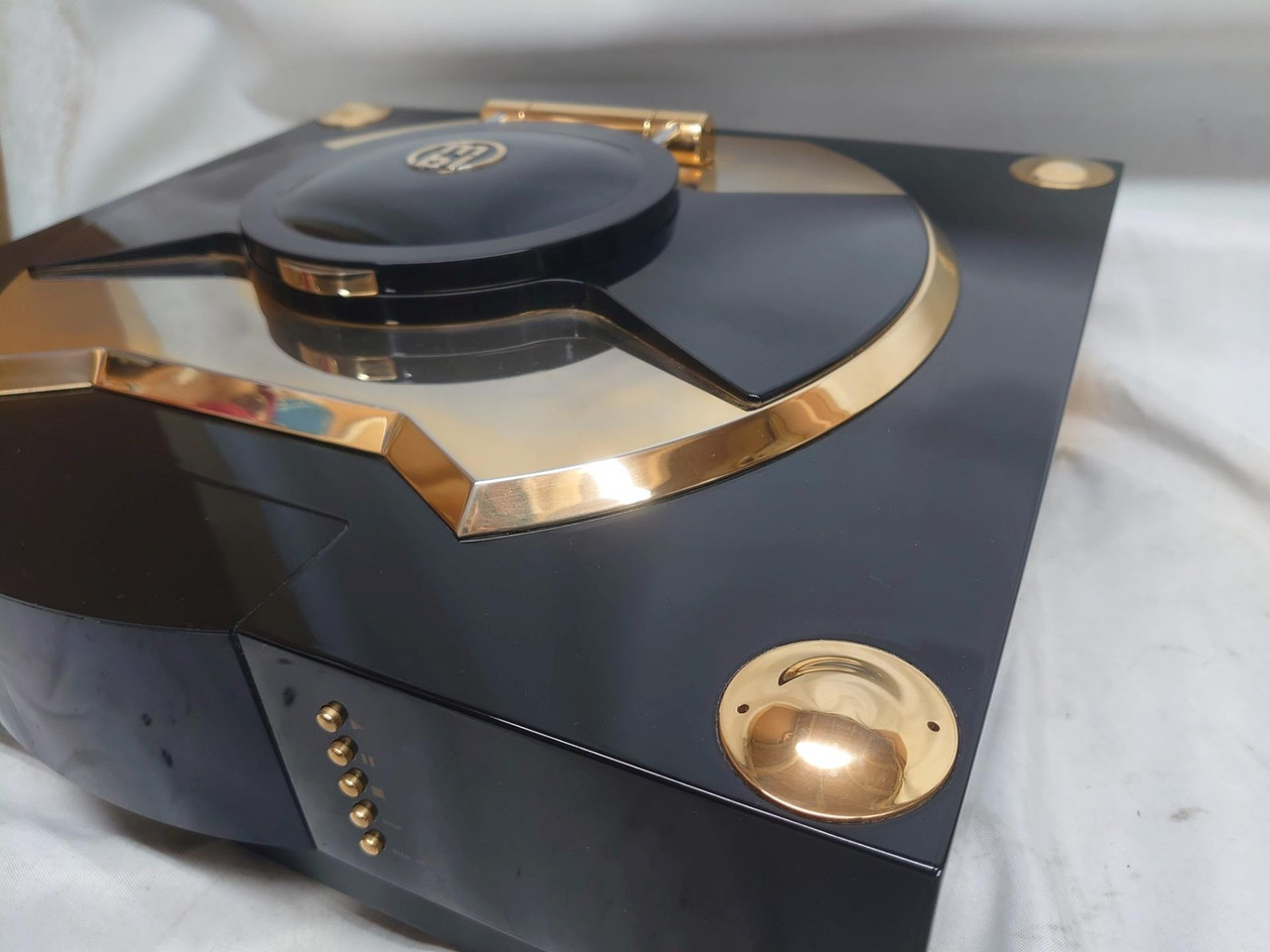 Verkaufspreis für £16.000. Mit Flight Case.Die Zeit steht nie still. Auch die Technologie nicht, und unser "Hier und Jetzt" hat dazu geführt, dass die Konventionen über Bord gefallen sind. Früher bedeutete Musikhören, den Deckel zu öffnen, die Platte zu drehen und den Tonarm sanft auf die Lieblings-Vinyl-LP zu senken – einfache Schritte in Erwartung des kommenden Vergnügens; Vielleicht archaisch in diesem digitalen Zeitalter sofortiger Befriedigung.Oder vielleicht ist es heute einfach... anders. Der vergoldete Deckel des 1621 A CD-Laufwerks erinnert an die Form und Größe einer 12"-LP – weckt Erwartungen bei stilbewussten Musikliebhabern. Allein das Anheben der luftdichten Laufwerksabdeckung, gefertigt aus einem massiven Aluminiumstück, das perfekt auf einem großzügigen Scharnier ausbalanciert ist, ist ein eigenständiges Erlebnis. Stecke die CD ein, sichere sie mit dem individuellen Stabilisator-Puck, schließe die Abdeckung und bereite dich darauf vor, weggefegt zu werden. Sobald man an einen gut gepaarten D/A-Wandler wie den MBL 1611 F angeschlossen ist, entsteht ein hochstabiles Klangbild, das eine gelassene, unerschütterliche Ruhe liefert, die heutzutage bei digitalen Quellen so oft fehlt.Solche technischen Fähigkeiten erfordern mechanisch konstruierte Unterstützung, die der Aufgabe gerecht wird. Das CD-Laufwerk ist auf einem vier Kilogramm schweren Unterchassis aufgehängt, das aus drei zusammengelagerten Metallen besteht. Das Subchassis wiederum ist eine Feder, die auf drei vibrationsdämpfenden "Säulen" montiert ist, um eine echte Basisisolierung zu gewährleisten. Der Scheibenstabilisator ist ein akustisch optimiertes, sorgfältig gefertigtes Gerät, das aus massivem Messing, Aluminium und Magnesium abgeleitet ist. Die präzisionsgefräste Spiralform im Antriebsdeckel ist mehr als nur ein schönes Design; es reduziert Luftturbulenzen in der Antriebskammer, um eine stabile und fehlerfreie Rotation der CD zu gewährleisten. Es ist eine unvergleichliche Meisterleistung der mechanischen und elektronischen Technik, die berauschende Musik aus den lasergeätzten Gruben in der Aluminiumschicht einer Polycarbonat-CD liefert. Wenn die ersten Töne erscheinen, wirst du es verstehen. Das MBL 1621 A garantiert dauerhaften Genuss jeder CD in Ihrer persönlichen Sammlung.Der Klang der Stille – die LaufwerkskammerEin CD-Player kann sein eigener schlimmster Feind sein! Die Schallwellen von Lautsprechern können empfindliche Tonabnehmersensoren, Laufwerksteile und die Disc selbst mit schallschädigenden Resonanzen beeinflussen. Sogar die CD, die sich mit 200 bis 500 Umdrehungen pro Minute dreht, kann interne atmosphärische Herausforderungen in Form von Luftturbulenzen und weiteren Resonanzen verursachen. Um diese Kräfte abzumildern, ist die Antriebskammer der MBL 1621 A mit größter Detailgenauigkeit konstruiert. Die massive Antriebsabdeckung mit ihrer Gummidichtung sorgt für völlige Stille in der Kammer und einen übernatürlich ruhigen Scanprozess. Das Innere des klappbaren Deckels selbst ist in einer proprietären Spiralform gefräst, die störende Luftturbulenzen verhindert.Masse und Metall – das Laufwerksgewicht OptimaleEntkopplung von der Umgebung, um maximale Glattheit zu erreichen – das ist der ideale Zustand eines CD-Laufwerks. Und hier ist die Masse entscheidend: Der Antriebsmechanismus ruht auf einem massiven vier Kilogramm schweren Unterchassis. Um mögliche Resonanzen zu vermeiden, ist sie mit Sandwich-Technologie gefertigt, die Messing, Aluminium und Terodem-Isolierungsmaterial verwendet – alles hängt an drei Stellen auf Schwingungsabsorbern aus hochdämpfendem Polyurethanpolymer.Die Resonanzfrequenz ist auf 13 Hz eingestellt und kollidiert daher nicht mit der niedrigsten Audiofrequenz (20 Hertz) oder der höchsten CD-Rotationsfrequenz (8,3 Hertz). Dank der integrierten Höhenverstellung kann der Antrieb wie ein hochwertiger Drehteller präzise horizontal eingestellt werden.Kleine Präsenz, enorme Wirkung – der LaufwerksstabilisatorEin auf der eingelegter CD platzierter Stabilisator sorgt für festen Kontakt und einen gleichmäßigen Ablauf der Disc ohne Vibrationen, Zittern oder Impulse, die den Klang beeinträchtigen. Dies gilt gleichermaßen für die Lesequalität des Lasergeräts und entsprechend für die endgültige Klangqualität, die schlichtweg tadellos ist. Der solide und erstaunlich schwere Stabilisator des 1621 A ist das Ergebnis umfangreicher Materialforschung mit unzähligen Hörvergleichen. Eine Sandwich-Konstruktion aus Messing, Aluminium und Magnesium, die mit einer Dämpfungsbeschichtung überzogen ist, hat sich in Bezug auf den Klang als optimal erwiesen. Zwei Gummiringe, einer innen und der zweite am äußeren Rand, drücken die CD sanft, aber wirkungsvoll auf das Laufwerksfach für präzisen Kontakt... und unbezahlbare Ergebnisse.Das MBL 1621 A auf den ersten BlickGerätegehäuse wurde aus einem einzigen Aluminiumblock gefräst.CD-Laufwerk positioniert auf einem soliden 6 kg (13,2 lb) schweren Unterchassis aus Messing, Aluminium und Terodem, dann an drei Punkten zur Isolierung mit einer Feder montiertDie verstellbare Nivellierung sorgt dafür, dass das Laufwerk perfekt horizontal ist. Luftdichte, massive Laufwerksabdeckung schützt vor äußeren Schalleinflüssen und Rotationsresonanzen.Sorgfältig entworfene und konstruierte Stabilisator-Puck hält die CD fest für eine glatte Leistung mit3-Strahl-Laser mit hoher Richtungsstabilität und wartungsfreier PositionierungToroidaltransformator mit ausgefeilter Schutzschirmtechnologie, magnetischer Abschirmung durch Mu-Metall-Gehäuse.Brillant konstruierte Ausgangstransformatorzelle mit einer erstaunlichen Bandbreite von 98,7 MHz. Separater Spannungsregler für jede der zehn Funktionsgruppen. Symmetrisch konstruierte Motor- und Lafettensteuerung. Separate Stromversorgung für digitale Musiksignale und digitale Steuersignale. Gruppenverzögerungsoptimierter Zweiphasenweg für optimale