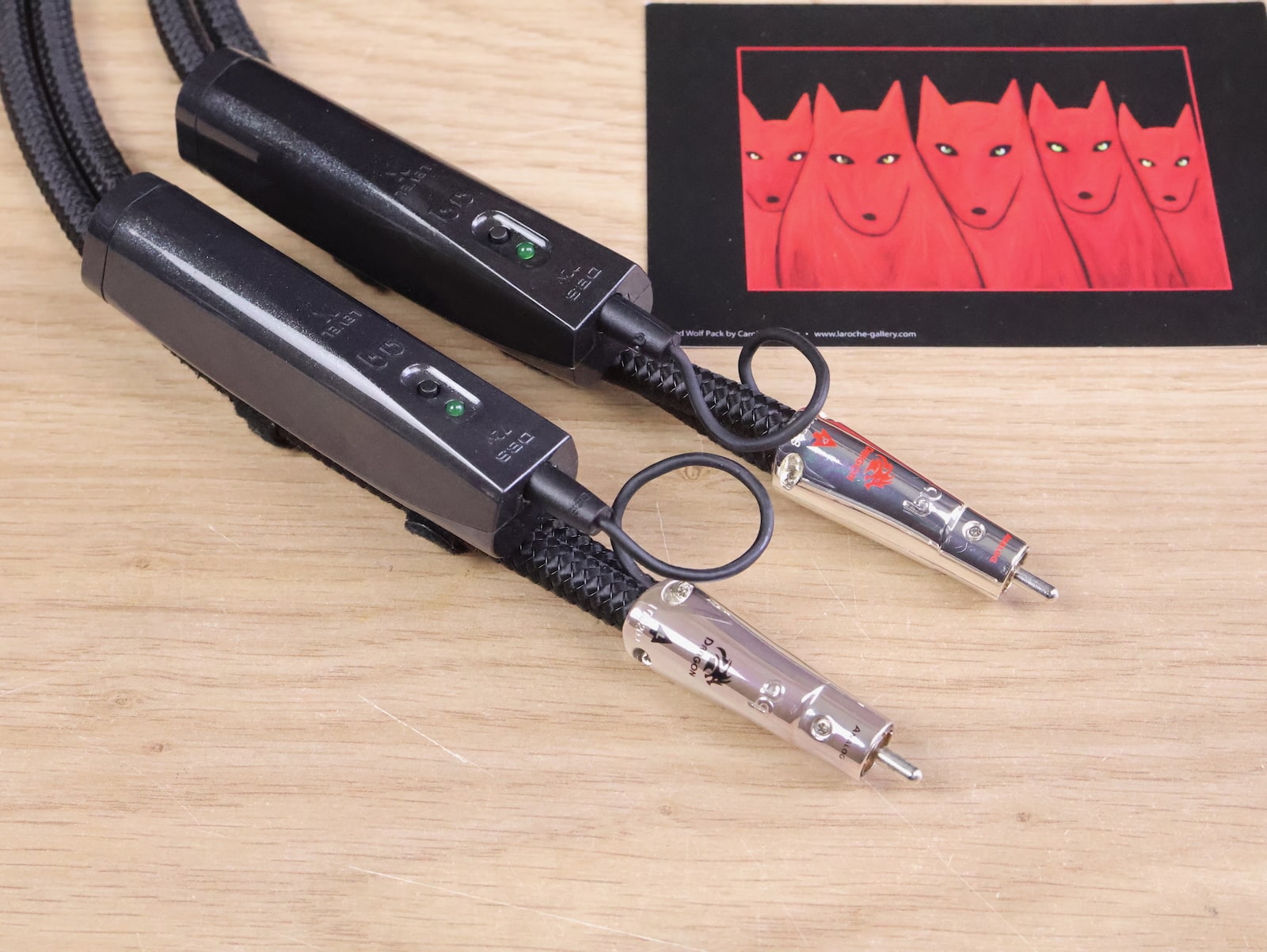 One pair of AudioQuest Dragon high end silver audio interconnect cables in a fantastic condition. The length is 0,75 metre and they have the original RCA connectors and Level-X DBS packs. The original box and case are included. Retail price is 9.249 euro. Check our other listings for more interesting items. Free shipping worldwide!Dragon has solid conductors made of Perfect Surface Silver (PSS), and it has FEP ‘Air Tubes’ as a dielectric. The ‘Level 7’ construction has the ZERO-Technology geometry and a 72V DBS module. Its Ground Noise Dissipation consists of graphene/carbon mesh shielding, and pure silver drain wires dissipate the noise.