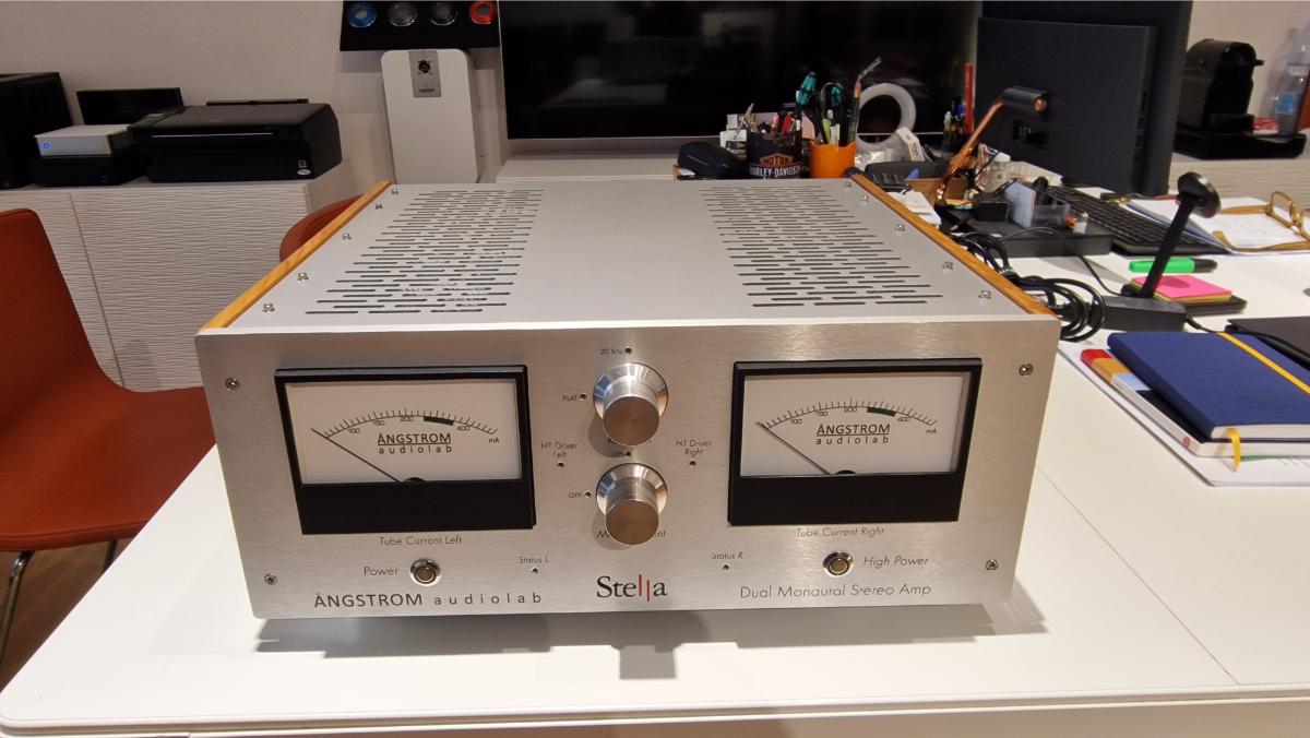 We are offering for sale an Angstrom Stella SSA100 Stereo Amplifier, a superb pre-owned high-end power amplifier in very good condition, as shown in the photos.The unit has recently been checked by the Angstrom laboratory, confirming its proper condition and readiness for use.Like the finest creations from Angstrom, this is a fully hand-wired tube amplifier, built with exceptional care and craftsmanship. It is a power amplifier of the highest level, designed for music lovers and demanding audiophiles who appreciate true high-end performance.The amplifier comes complete with new Angstrom packaging.