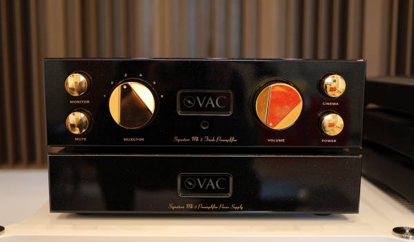 TanımVAC Signature mkIIa (sadece hat), üst düzey iki şasili tüp ön amplifikatör (ses ünitesi ve ayrı güç kaynağı).Mükemmel, orijinal ambalaj, siyah altın düğmeli, uzaktan kumanda.Tasarım, tamamen negatif geri beslemenin (Sıfır Negatif Geri Bildirim) olmaması ile karakterize edilen Sınıf A1 triyot çalışmasına sahip tam dengeli bir devreye dayanmaktadır.Mimari ve İnşaatSinyal Yolu: Aşırı devre saflığı, ses sinyal yolu boyunca kondansatör yok.Şasi: Tamamen manyetik olmayan alüminyum yapı, elektromanyetik ve mekanik paraziti ortadan kaldırmak için tasarlanmıştır.Güç Kaynağı: Maksimum galvanik izolasyon ve gürültü azaltma için özel dış ünite.Teknik ÖzelliklerHat Kazancı: 12 dB dengeli XLR / 6 dB tek uçlu RCA4 toplam tüp (2 x 6DJ8 ve 2 x 12AU7).Bir seçici anahtarı kullanarak, 6DJ8 tüpleri yerine iki 8416 tüp (dahil edilmemiş) kullanabilirsiniz.Hat Girişleri: 1 x XLR (Dengeli) 5 x RCA (Dengesiz) 1 x RCA Bant1 x Sinema BypassÇıkışları: 1 x XLR (Dengeli)2 x RCA (Dengesiz)1 x RCA Bant KaydıBoyutları (B x H x D): 45.7 x 14 x 37 cm.Kontroller ve İşlerAna Kontroller: Ses Seviyesi, Giriş Seçicisi, Sessiz.Entegrasyon: Ev sinema sistemlerine kolay entegrasyon için Sinema Bypass özelliği.