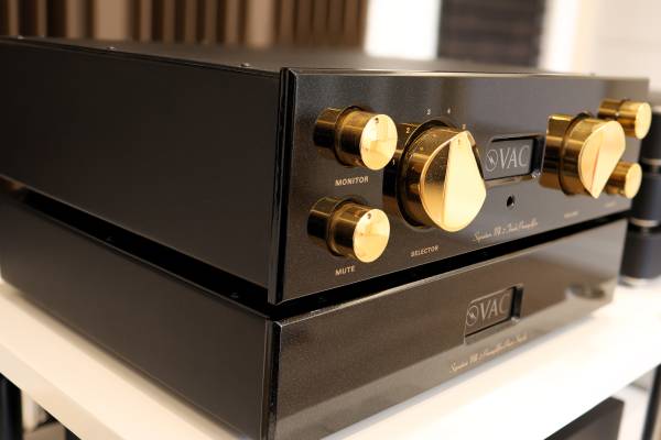 DescriptionVAC Signature mkIIa (line only), high-end two-chassis tube preamplifier (audio unit and separate power supply).Perfect, original packaging, black with gold knobs, remote control.The design is based on a fully balanced circuit with Class A1 triode operation, characterized by the total absence of negative feedback (Zero Negative Feedback).Architecture and ConstructionSignal Path: Extreme circuit purity, no capacitors along the audio signal path.Chassis: Fully non-magnetic aluminum structure, designed to eliminate electromagnetic and mechanical interference.Power Supply: Dedicated external unit for maximum galvanic isolation and noise reduction.Technical SpecificationsLine Gain: 12 dB balanced XLR / 6 dB single-ended RCA4 total tubes (2 x 6DJ8 and 2 x 12AU7).Using a selector switch, you can use two 8416 tubes (not included) instead of the 6DJ8 tubes.Line Inputs:1 x XLR (Balanced)5 x RCA (Unbalanced)1 x RCA Tape1 x Cinema BypassOutputs:1 x XLR (Balanced)2 x RCA (Unbalanced)1 x RCA Tape RecordDimensions (W x H x D): 45.7 x 14 x 37 cm.Controls and FunctionsMain Controls: Volume, Input Selector, Mute.Integration: Cinema Bypass function for easy integration into home theater systems.