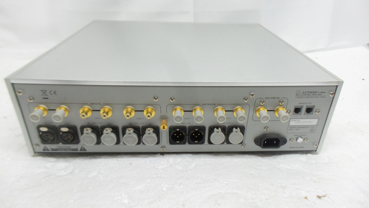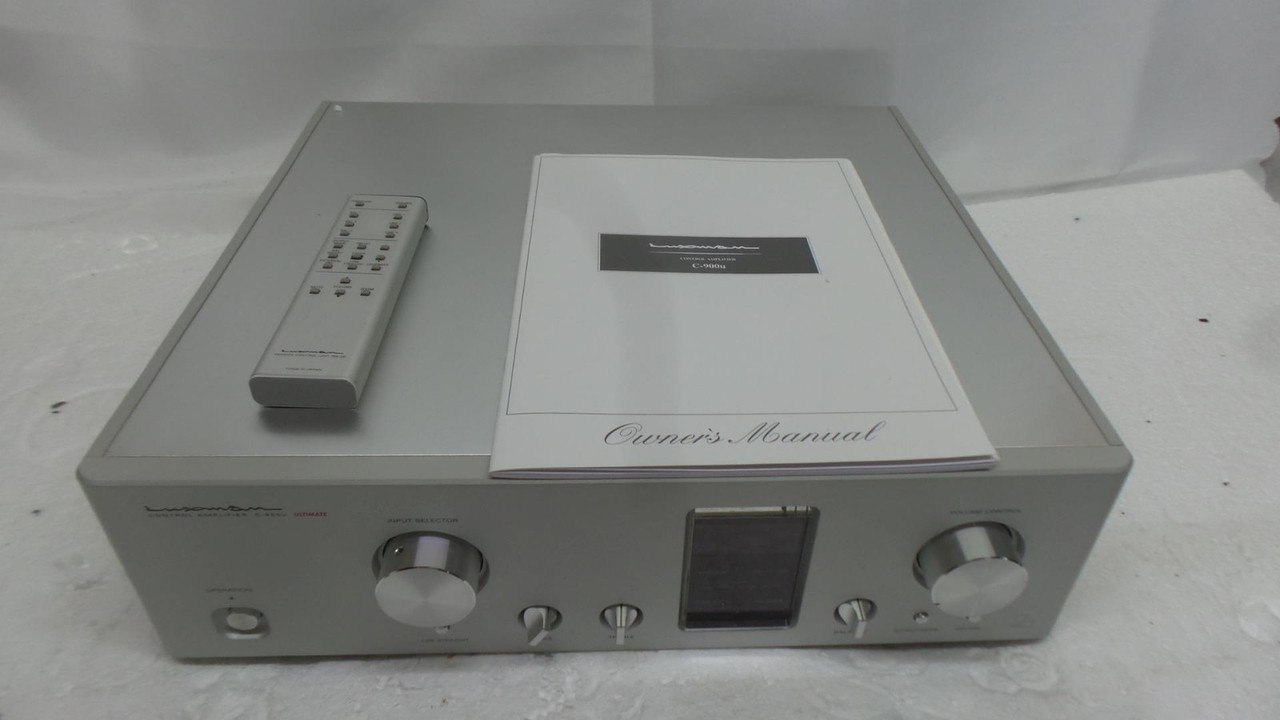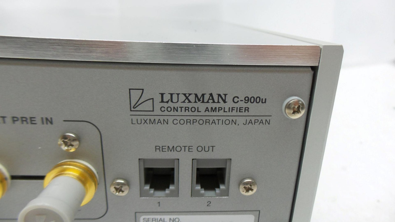 Excellent.LUXMAN’s pursuit of the uppermost standards of tonal quality has lead to the creation of the C-900u. Four independent modules in the balanced amplification circuit enable the hot and cold components of the left and right audio signals to be handled independently to suppress unnecessary noise generation. Combining an evolved version 4.0 of their traditional ODNF circuit and a robust power supply has achieved high signal-to-noise performance and improved sound quality without distortion. LUXMAN’s original LECUA 1000, a stepped fixed resistance attenuator, is used for the volume adjustment system, a major feature of this new control amplifier. The 88 step range allows for more precise volume adjustment. This product is an appropriate centerpiece for any modern hifi system due to its elegant design, user friendly features, refined tone controls, premium tactile operation, and more New LECUA 1000 attenuator, a fully balanced configuration and a discretely configured ODNF circuit, directly coupled to the amplifier It can be said that accurate volume adjustment is fundamental to a control amplifier. The C-900u has been equipped with our new LECUA* 1000, a highly precise electronically controlled attenuator which has been used in LUXMAN’s 80th anniversary flagship model, the C-1000f. This system is extremely resistant to external vibration and changes in sound quality over the volume control range, as well as being an extremely durable design. The LECUA circuit uses stepped fixed resistance and increasing the number of steps from 72 to 88 allows more delicate volume control adjustments, with no deterioration of sound quality from 0dB to 87dB. C900u internal The completely balanced configuration of the C-900u features 4 of these new LECUA 1000s in parallel, achieving ideal balanced transmission. Also, the LECUA 1000 system handles left and right balance control adjustment and level adjustment in bi-amplified output mode. In addition, the new LECUA 1000 circuit has an improved three dimensional structure and is directly connected to the amplification circuit, minimising signal routing and improving efficiency. Their latest negative feedback circuit, ODNF** version 4.0, achieves higher performance, being quadruple paralleled in the first main amplifier stage, triple paralleled in the first error detection stage and featuring a Darlington connected second stage. Only the distorted components of an audio signal are fed back to the amplification circuit to optimize the negative feedback effect. Increased primary slew rate and ultra-wide bandwidth contribute to an extremely low level of distortion, especially in the high frequency range. An improved signal to noise ratio allows the full expression of delicate musical pieces where the amount of feedback should be minimal. Luxman have paid special attention to the shape, weightiness and texture of the volume control knob, pursuing a natural, high quality feel since this control is most frequently handled by the listener. * LECUA stands for “LUXMAN Electrically Controlled Ultimate Attenuator”. ** ODNF stands for “Only Distortion Negative Feedback”. Large capacity, highly stable power supply circuit The high performance power supply circuit features a CI type power transformer, with equivalent capacity to that of our B-1000f monaural power amplifier. Applying the philosophy of “Power Amplifier Driver”, the voltage amplification stage drives the connected power amplifier stage precisely with sufficient power and is regulated by four large capacity 3,300μF blocking capacitors. The delicacy and vitality of various audio signals are transmitted to the power amplifier with the support of this remarkably stable power supply with almost no small voltage fluctuations. Multifunctional and user friendly The multifunctional C-900u has been equipped with user-friendliness, flexibility, and expandability to fully integrate with the listening environment. The clearly visible fluorescent display shows current input source and sound volume. A zoom function on the remote control can expand this 4 times larger. This unit is equipped with a bi-amplifier output mode, in which a balanced output circuit can be used as a 2-channel unbalanced output. An external pre-amplifier input is useful for connection to an AV system and the tone controls are electronically tuned for added tonal quality. Highly rigid chassis, isolator legs & blasted white finish The highly rigid loopless chassis used for the enclosure eliminates ground loops which can lead to deterioration in sound quality. Cast-iron isolator legs prevent resonance thanks to the characteristics of their metallic structure, the density gradient decreasing from the center to the periphery of each leg. The legs also eliminate adverse effects caused by vibration and effects from the power transformer or the supporting surface. The blasted white exterior has no visible structural screws, adding a touch of high quality and a dignified presence Comfortable remote control operation Luxman C-900u remote The lightweight aluminum remote control allows the user to operate a wide variety of the C-900u’s functions comfortably from the listening position. Volume adjustment is a matter of course, the loudness function that automatically provides optimal tonal adjustment according to sound volume, selection of balanced phase presets that can be set for each input unit, display dimmer control (brightness switching), display zoom control and more are all remotely operable.Specifications C-900uInput sensitivity/Input impedance Unbalanced 255mV/43kΩ Balanced 255mV/86kΩ Output/Input impedance Unbalanced rating 1V/90Ω, max. 11V Balanced rating 1V/180Ω, max. 22.5V Frequency response 20Hz to 20kHz (+0, -0.1dB) 5Hz to 120kHz (+0, -3.0dB) Total harmonic distortion Unbalanced 0.009% (20Hz to 20kHz) Balanced 0.005% (20Hz to 20kHz) S/N ratio (IHF-A) Unbalanced 123dB Balanced 126dB Volume adjustment New LECUA1000 Negativ