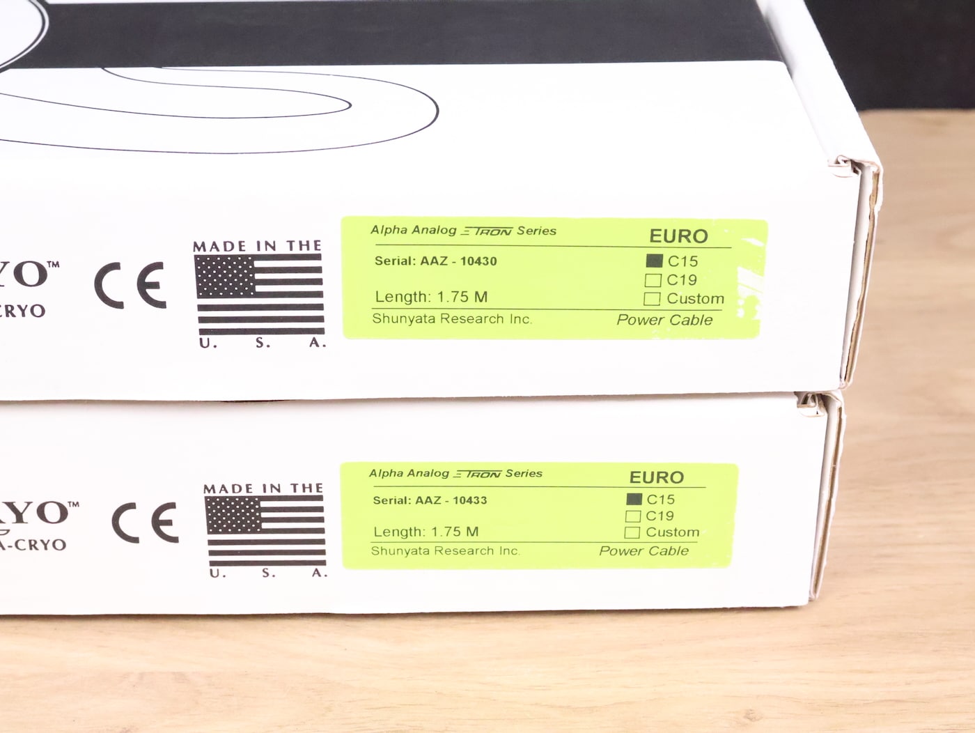 Dos cables de alimentación Shunyata Research Z-Tron Alpha Analógicos en excelente estado. La longitud de ambos es de 1,75 metros y conservan los conectores originales (tipo de pared de la UE y CEI C15). Los números de serie son AAZ-10430 y AAZ-10433. Las cajas originales están incluidas. El precio es de 799 euros por un cable analógico Alpha. Consulta nuestros otros anuncios para ver más artículos interesantes. ¡Envío gratis a todo el mundo!