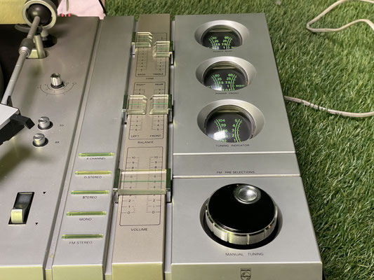 The Philips 22AH832 is a rare all-in-one device from the early 1970s, which deliberately sets itself apart from classic hi-fi components of the time. Receiver and turntable are combined in a single, independently designed housing. With this model, Philips did not pursue a modular concept, but an integrated solution in which technology, operation and design were understood as a closed whole.Particularly striking is the progressive, almost futuristic design, which today fits perfectly into modern living concepts such as lofts, mid-century interiors or deliberately minimalist spaces. The wide front with the horizontal scale, the display instruments and the clearly structured controls looks technical, present and decorative at the same time. The Philips 22AH832 is therefore not just a playback device, but a visible design object with a strong recognition value.The integrated turntable is designed to be firmly matched to the receiver and enables direct playback operation without additional external components. All functions are brought together centrally, resulting in a clear and clearly structured device structure. This consistently integrated design is typical of Philips' experimental design phase in the early 1970s and was only comparatively rarely implemented in this form.Historically, the Philips 22AH832 has often been paired with Philips speakers from the early 1970s. These include various models of the 22AH and 22RH series, which were designed and conceptually adapted to such integrated receiver systems. Philips offered a variety of different speaker types during this time, which were used depending on the size of the living space, performance class and design preferences.We regularly have various matching Philips speakers from this period. Since the available models are constantly changing and there are numerous variants, please feel free to contact us if you are interested. On request, we can advise you on a historically and visually harmonious combination to match the Philips 22AH832.The present Philips 22AH832 is in a very nice state of preservation overall. The device looks well-maintained, complete and visually coherent, which has become increasingly rare in these models. Technically, the device is tested and fully functional, unless expressly stated otherwise. Technical data and information (without guarantee): ModelPhilips 22AH832Device typeStereo receiver with integrated turntableManufacturerPhilipsProduction periodEarly 1970sTunerFM stereoTurntableintegratedDesignCompact deviceHousingPlastic housing in the design typical of the timeFunctionally tested and fully functional Frequently asked Is the turntable permanently integrated?Yes, the turntable is part of the device and is designed to match the receiver.Is it a classic hi-fi component unit?No, the Philips 22AH832 is designed as a closed complete system and deliberately differs from modular hi-fi systems.Which speakers are historically suitable for this device?In terms of timing and concept, Philips speakers from the early 1970s fit, especially models from the 22AH and 22RH series. Since there were numerous variants, we will be happy to advise you individually.Are matching speakers available?We regularly have various Philips speakers from this period in stock. Please contact us if you are interested in a suitable combination. All offered devices are in perfect, tested condition and are offered with a 12-month warranty.