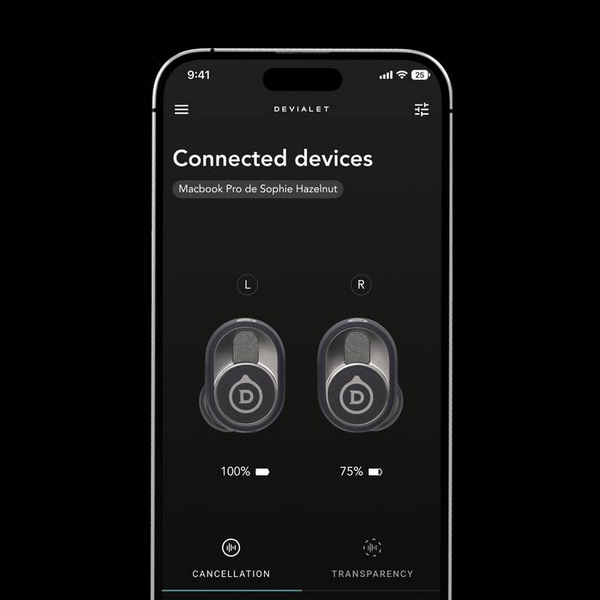 Our new Devialet Adaptive Noise Cancellation™ technology dynamically adjusts to the shape of your ear. The result? Reduction in audio artifact and white noise, a more pleasant listening experience with zero compromise on performance, and improved battery life.