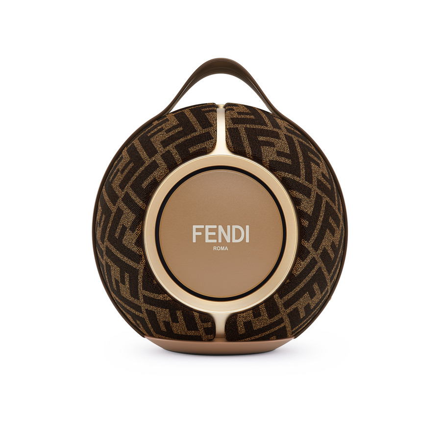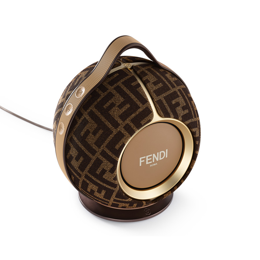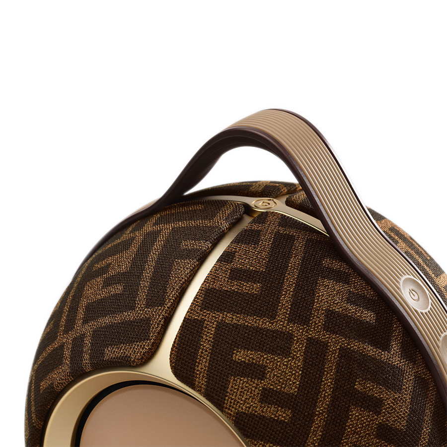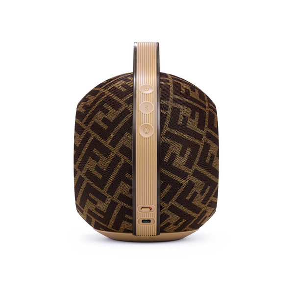 This new edition reinterprets the House’s aesthetic codes: the iconic "FF" monogram elegantly wraps the speaker, enhanced by a black metallic ring with chrome accents. As the ultimate signature of this collaboration, the Fendi logo adorns the center of the woofer, asserting the exclusive and bold character of this design piece.